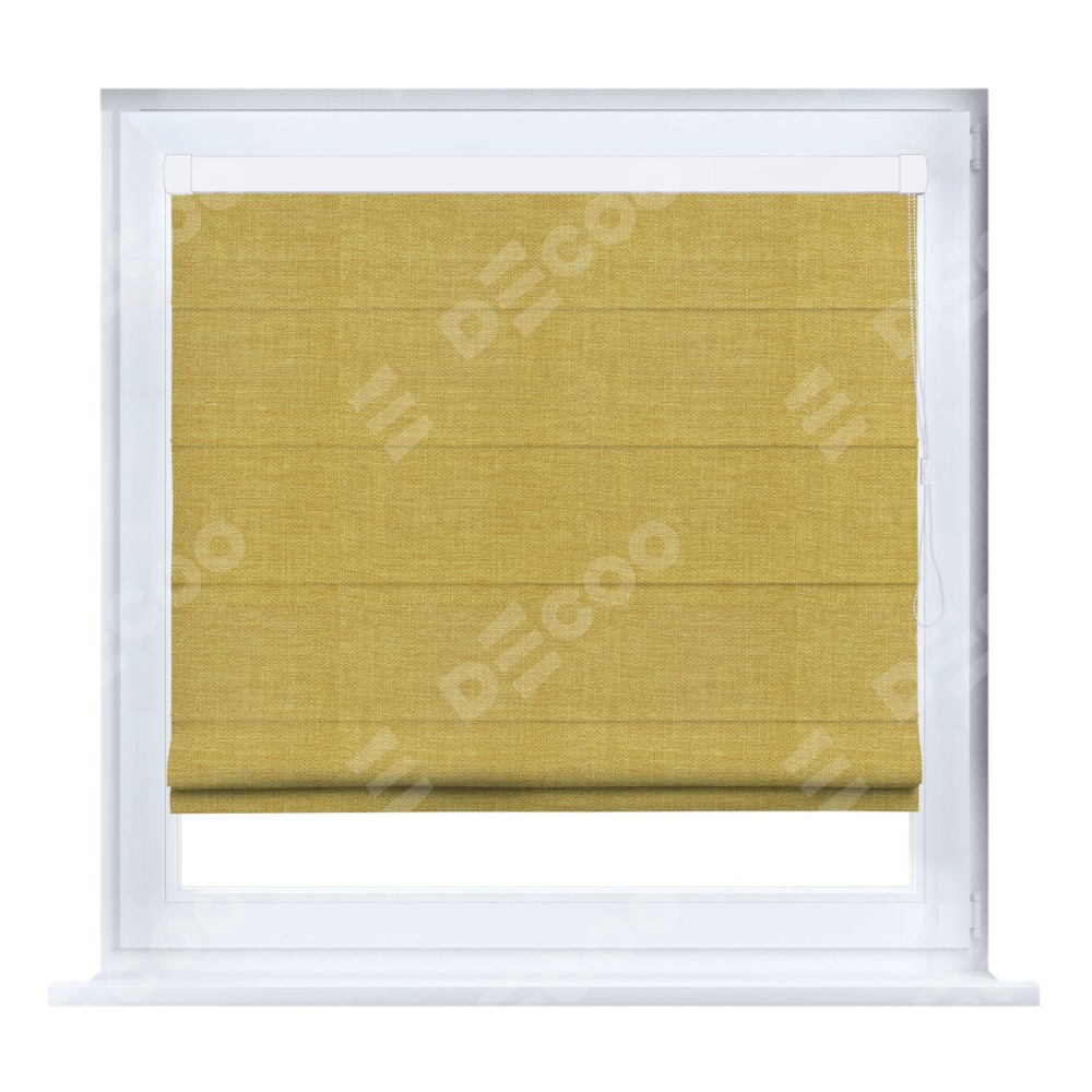 Римская штора кассетного типа, производителя «Cortin», устанавливается только на пластиковые окна и прилегает к стеклопакету, пошита из ткани лён горчичный, артикул 74740.