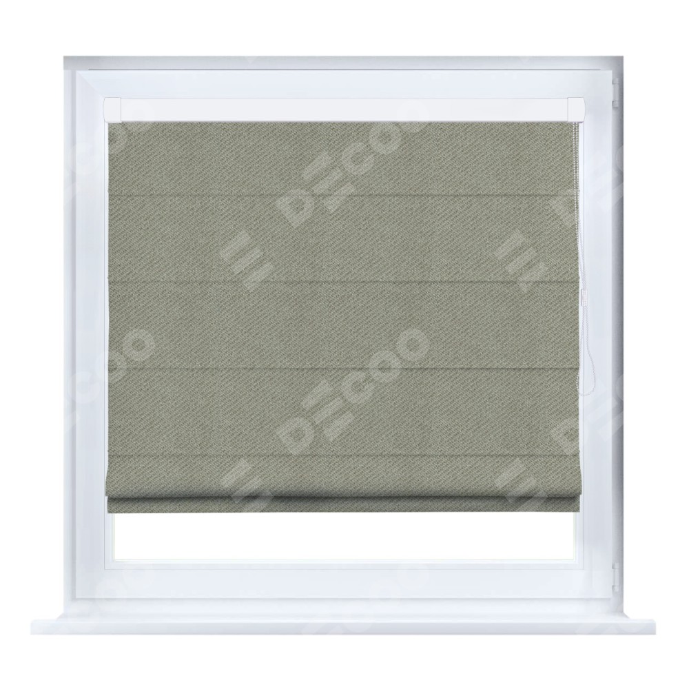 Римская штора кассетного типа, производителя «Cortin», устанавливается только на пластиковые окна и прилегает к стеклопакету, пошита из ткани твид кофейный, артикул 26412.