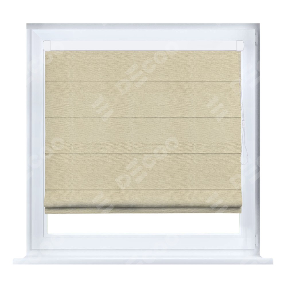 Римская штора кассетного типа, производителя «Cortin», устанавливается только на пластиковые окна и прилегает к стеклопакету, пошита из ткани блэкаут однотонный милано латте, артикул 05.