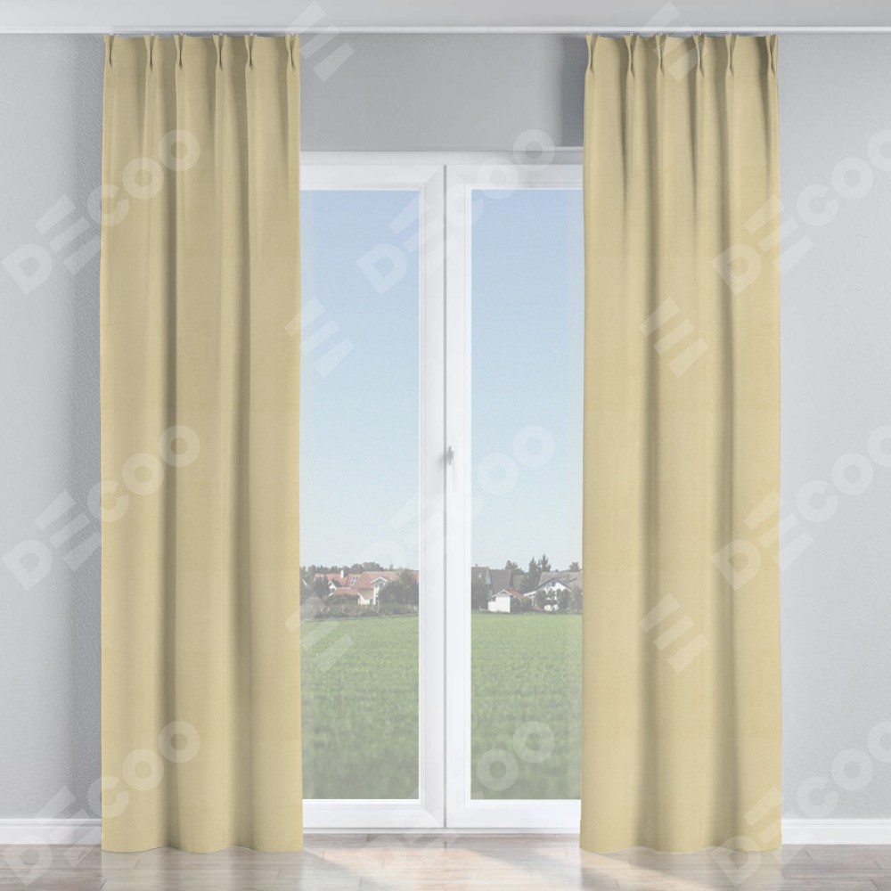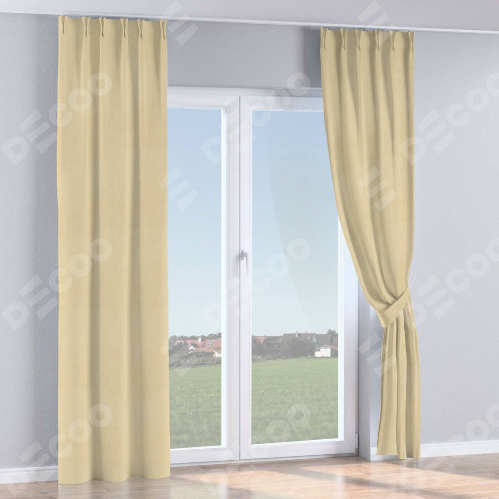Комплект прямых штор, от производителя «Cortin», пошиты из ткани блэкаут однотонный милано латте, артикул ткани 05. С изнаночной стороны в верхней части штор пристрачивается шторная лента с декоративными складками «Кустик». Для создания элегантных складок прямые шторы шьются по стандарту с коэффициентом 1:2 (на 100 см. ширины проёма 200 см. ширины ткани).