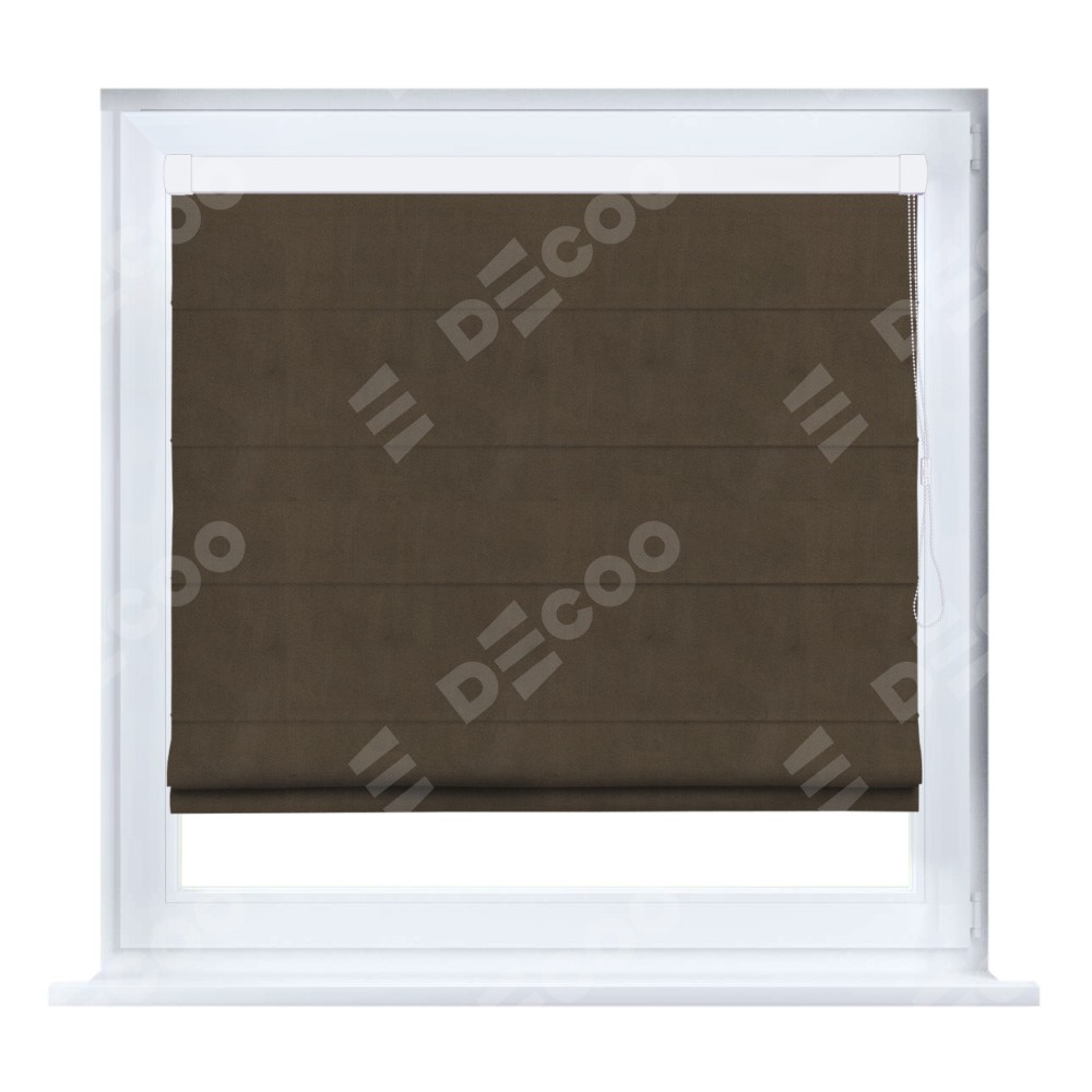 Римская штора кассетного типа, производителя «Cortin», устанавливается только на пластиковые окна и прилегает к стеклопакету, пошита из ткани бархат тёмно-коричневый, артикул 5017.