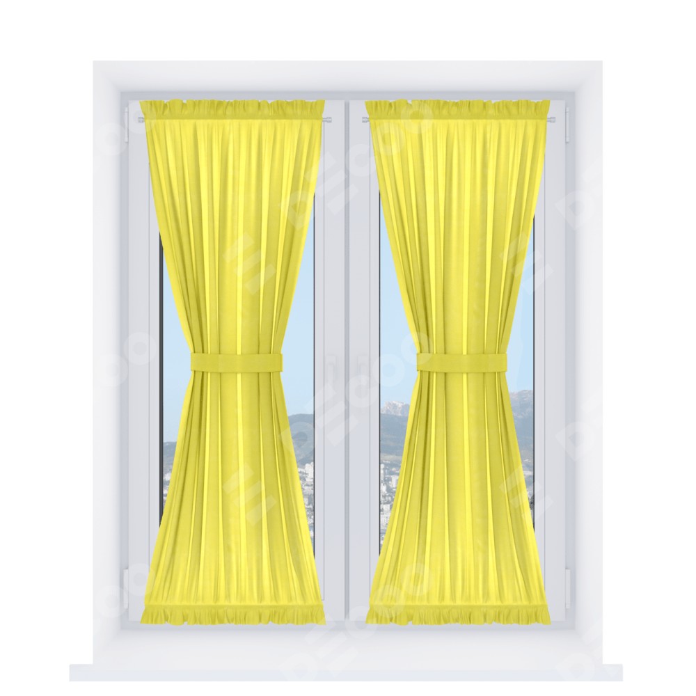 Штора «Песочные часы» производителя «Cortin», используется для створок окон и дверей, пошита из ткани вельвет светло-желтый, артикул ткани 30997.
