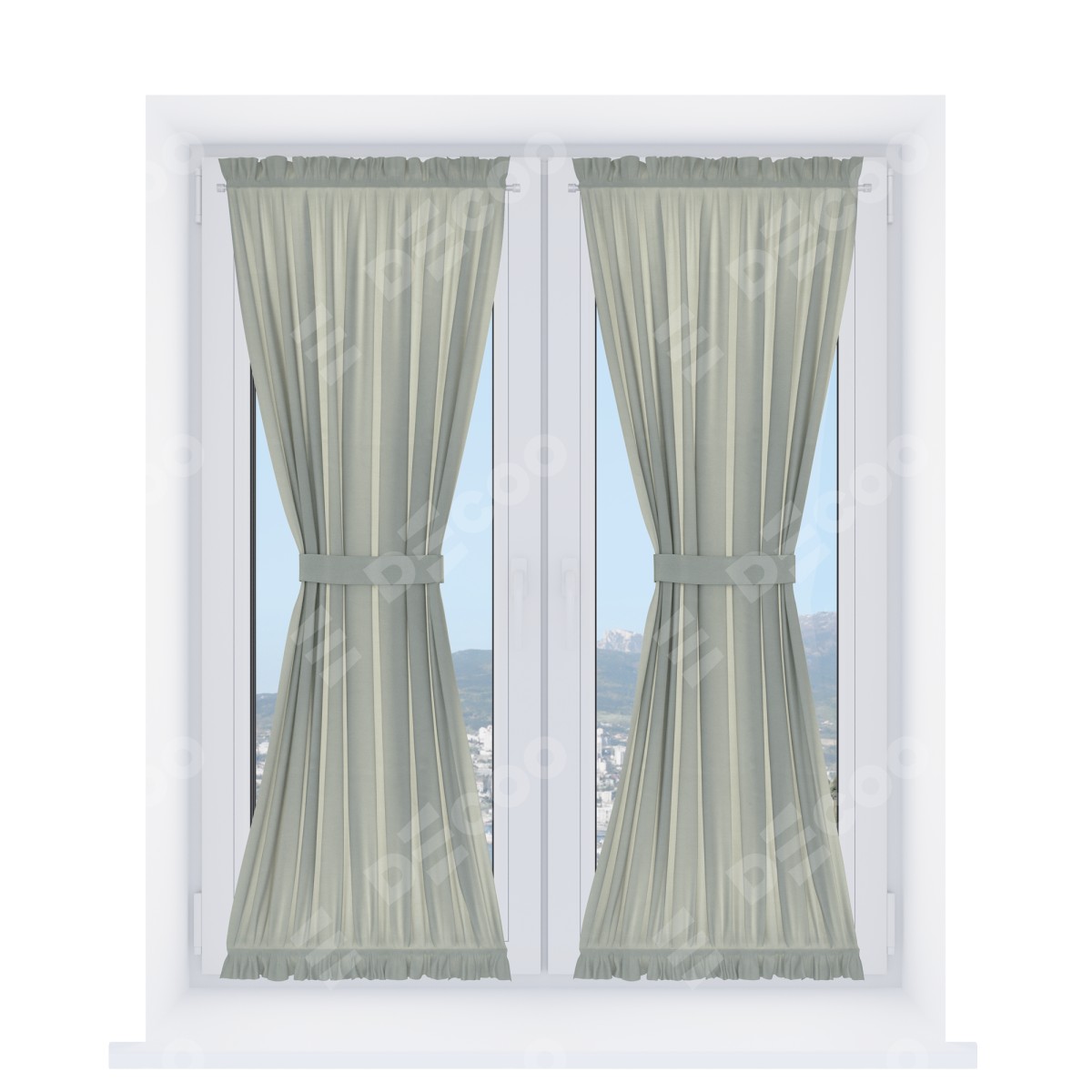 Штора «Песочные часы» производителя «Cortin», используется для створок окон и дверей, пошита из ткани вельвет светло-серый, артикул ткани 30981.
