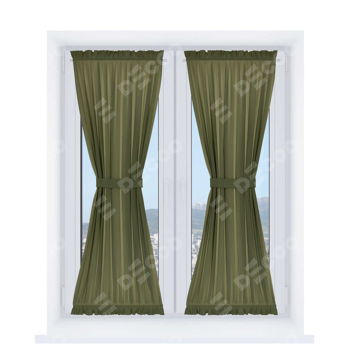 Штора «Песочные часы» производителя «Cortin», используется для створок окон и дверей, пошита из ткани блэкаут однотонный зелёный, артикул ткани 81859.