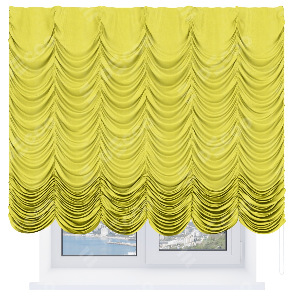 Французская штора производителя «Cortin», используется для проёма, пошита из ткани вельвет светло-желтый, артикул ткани 30997. Имеет универсальный механизм и подходит для монтажа: на потолок и на стену.