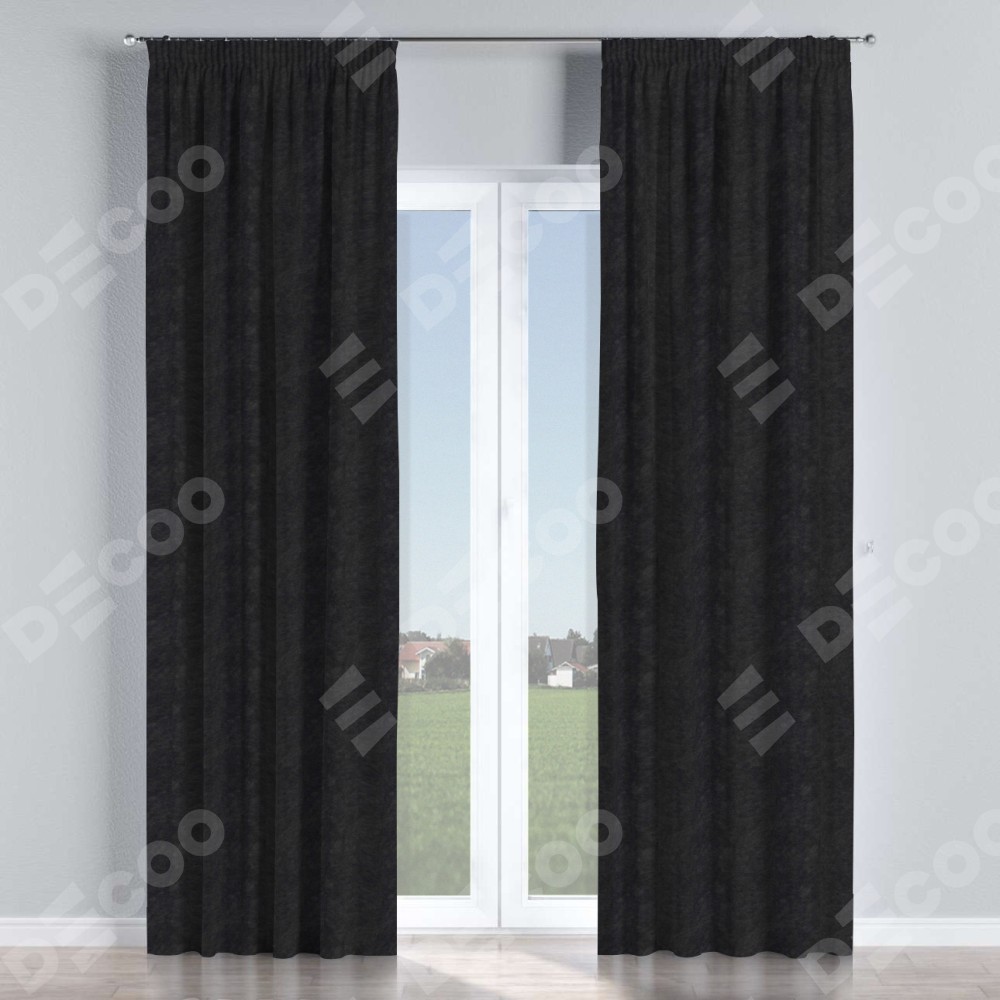 Комплект прямых штор, от производителя «Cortin», пошиты из ткани cotton блэкаут тёмно-серый, артикул ткани 35282. С изнаночной стороны в верхней части штор пристрачивается шторная лента с декоративными складками «Карандаш». Для создания элегантных складок прямые шторы шьются по стандарту с коэффициентом 1:2 (на 100 см. ширины проёма 200 см. ширины ткани).
