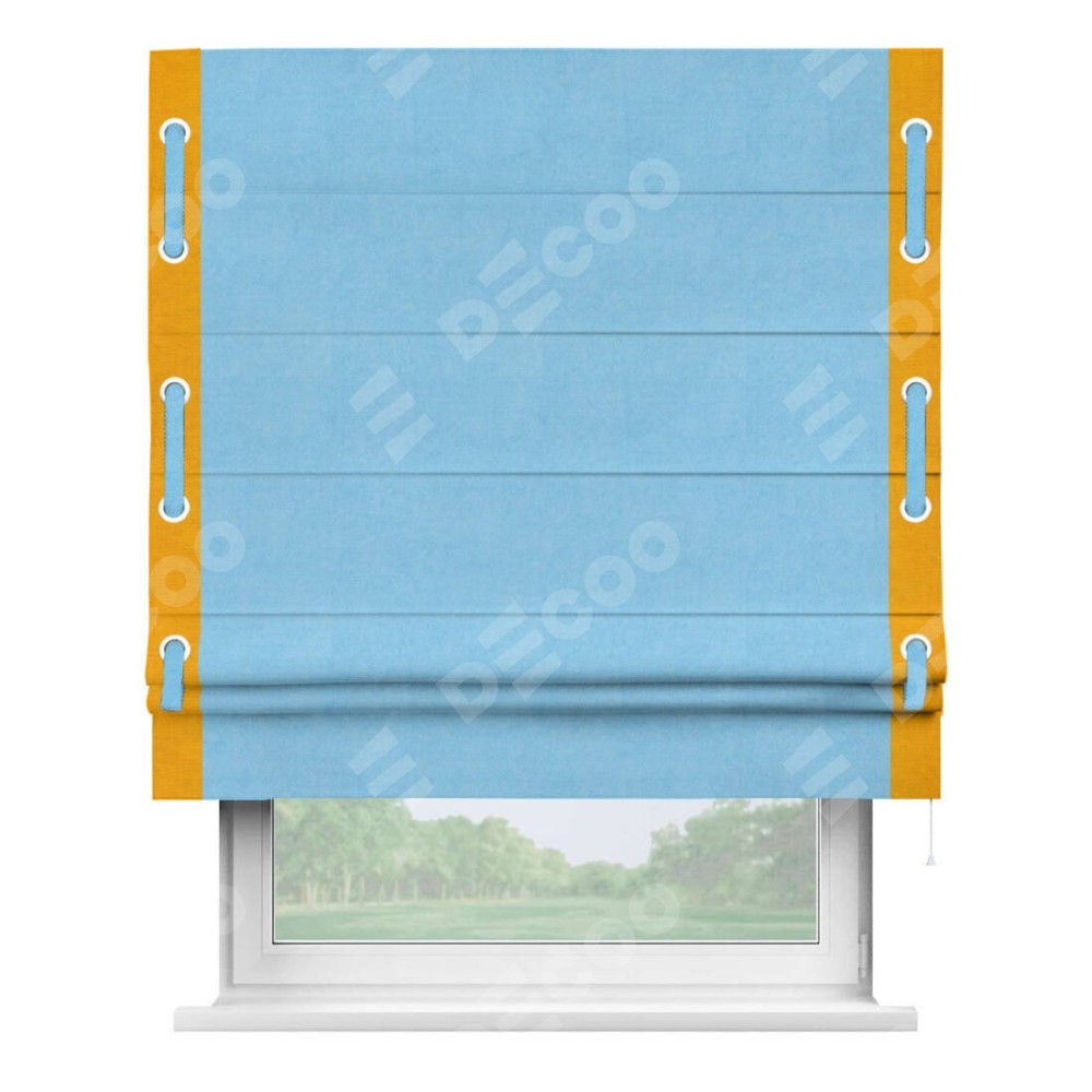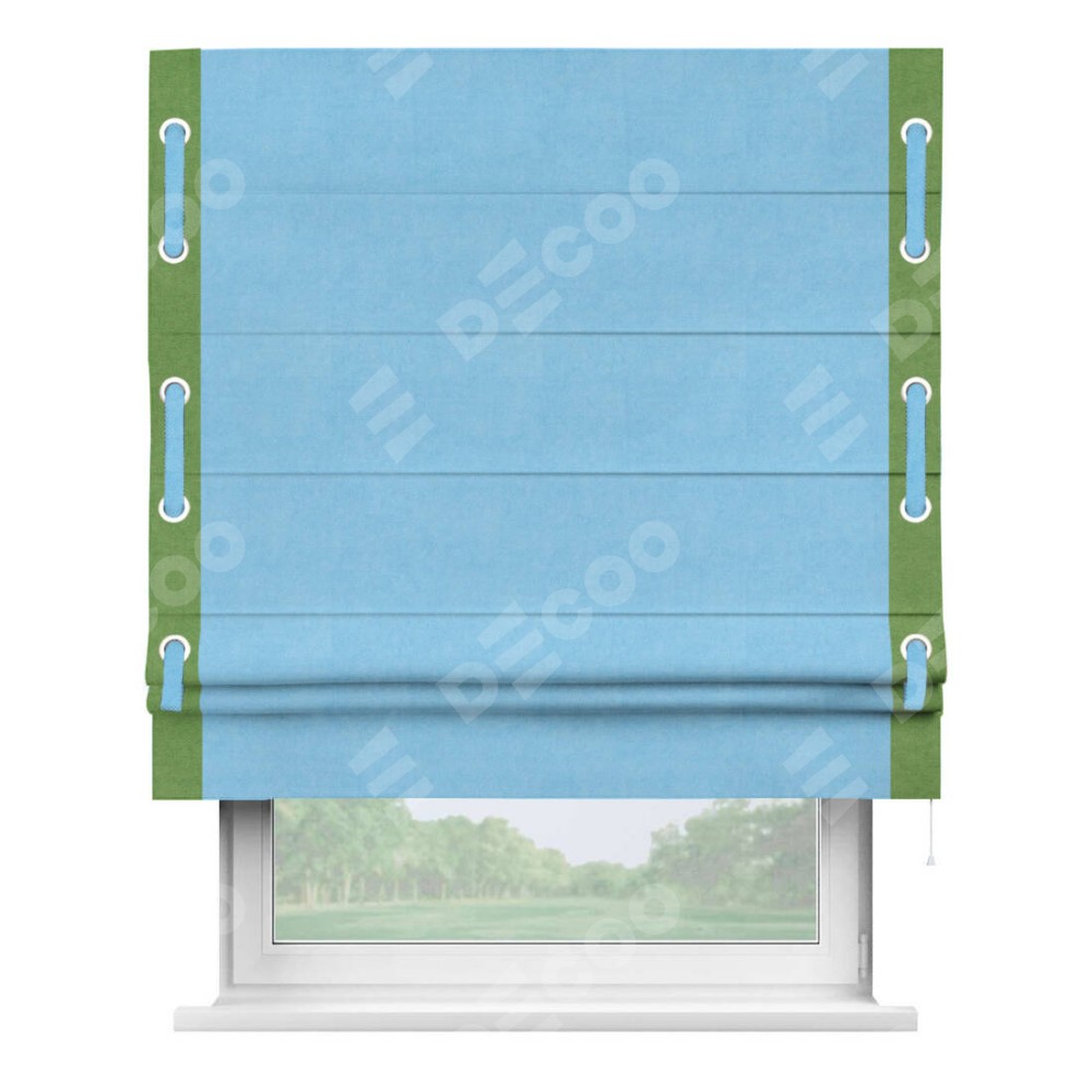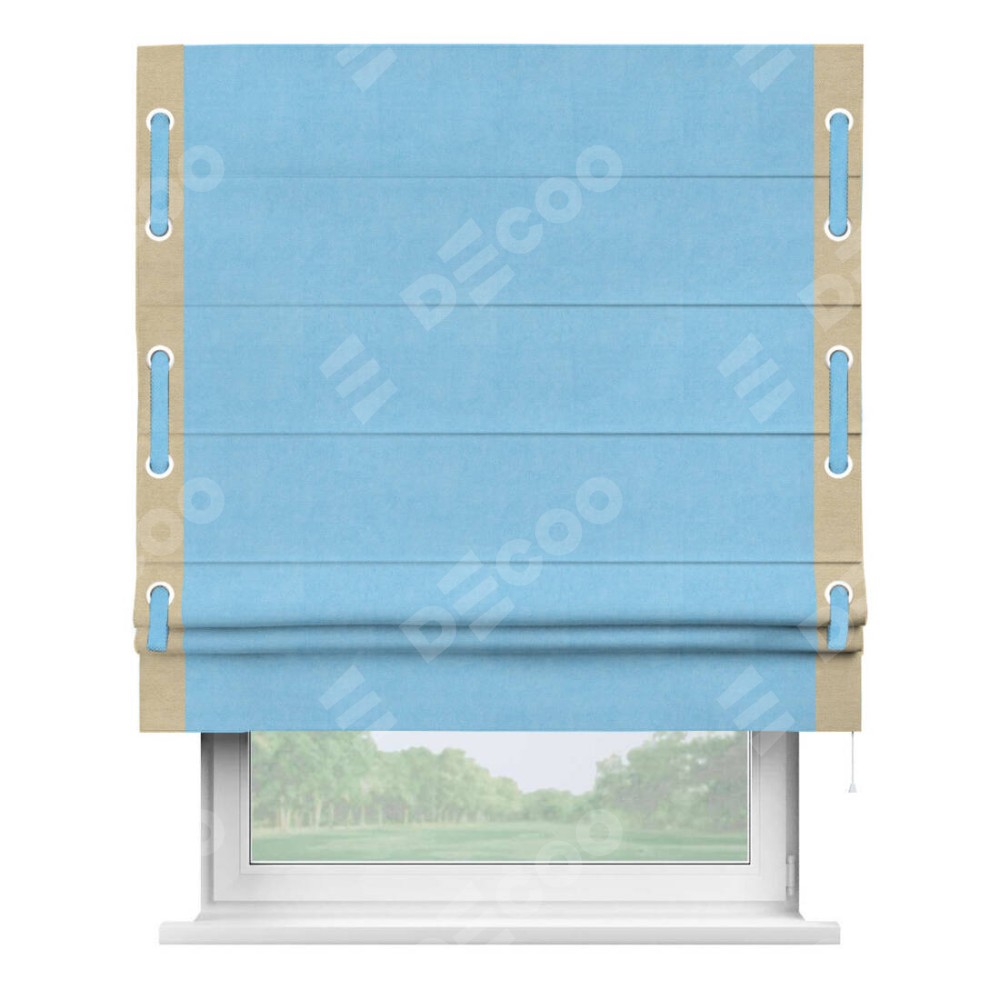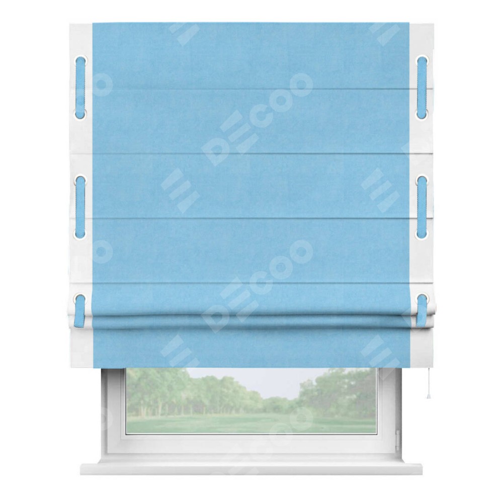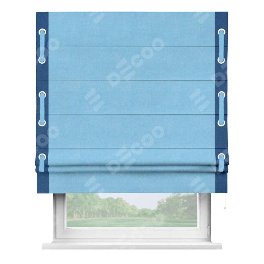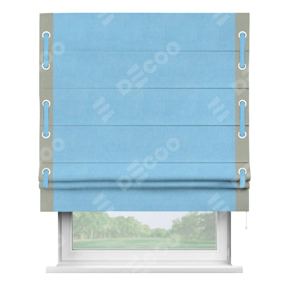 Римская штора «Кортин» с кантом Стрим Дуо (люверсы с пояском), для проема, ткань вельвет голубой