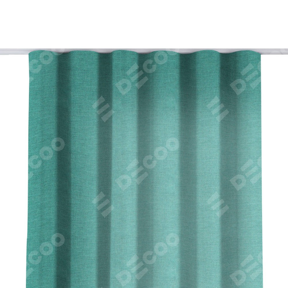 Комплект прямых штор, от производителя «Cortin», пошиты из ткани лён изумрудный, артикул ткани 85908. С изнаночной стороны в верхней части штор пристрачивается шторная лента с декоративными складками «Волна». Для создания элегантных складок прямые шторы шьются по стандарту с коэффициентом 1:2 (на 100 см. ширины проёма 200 см. ширины ткани).