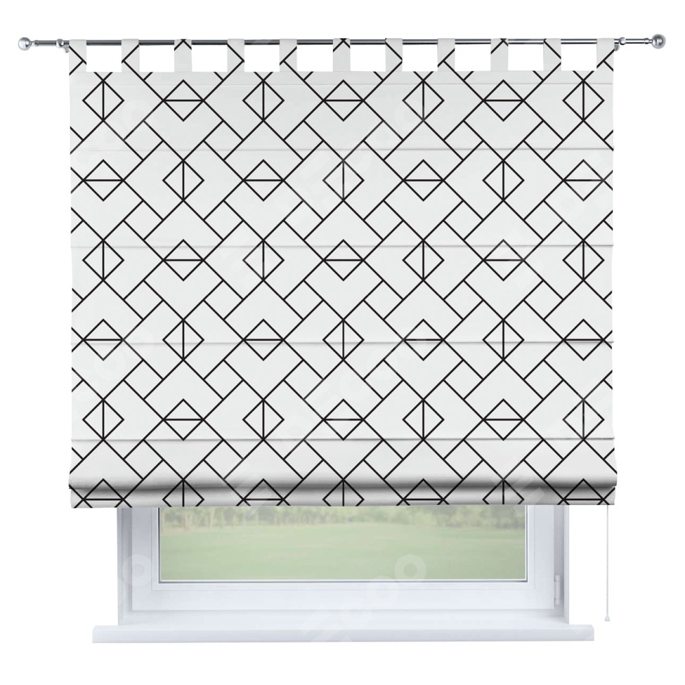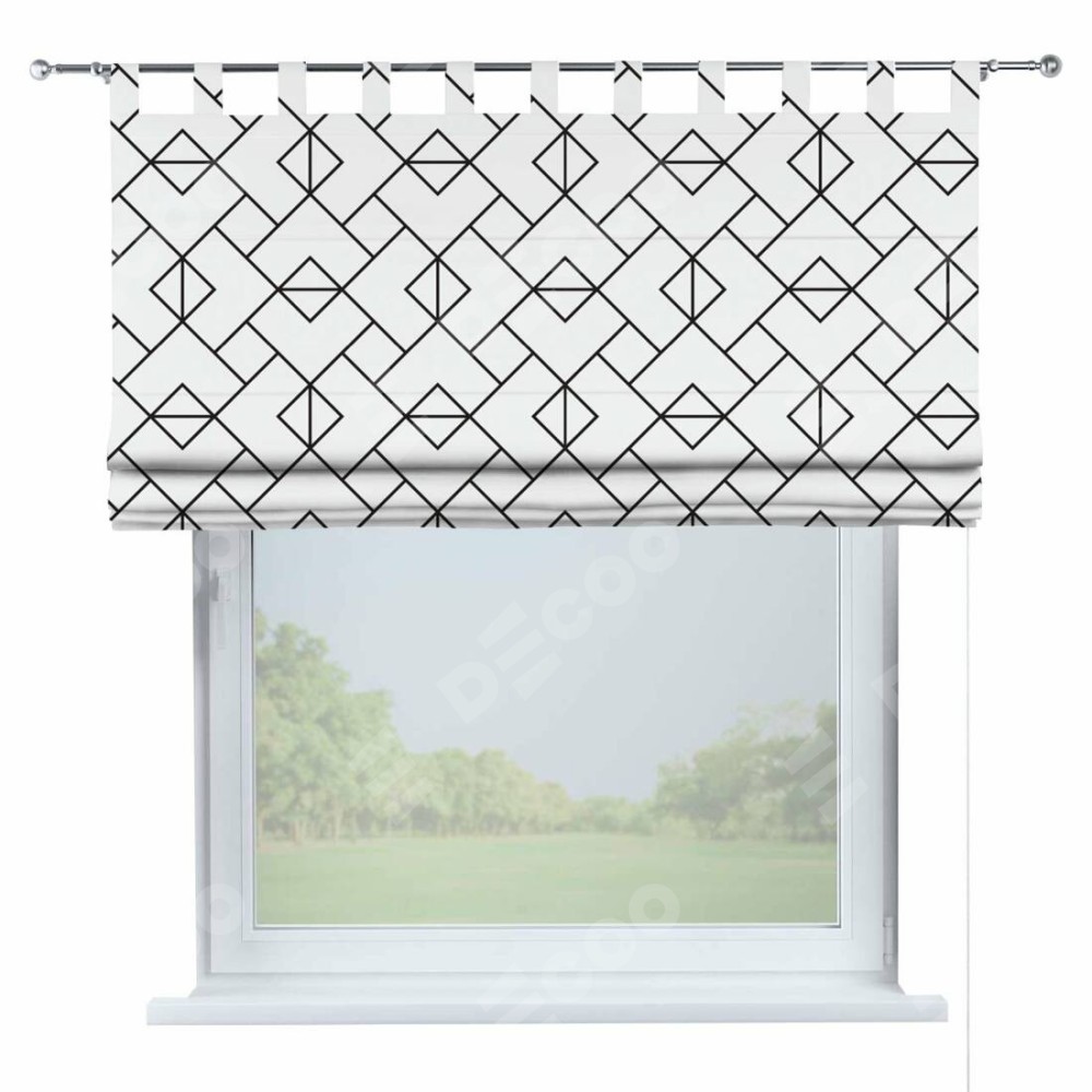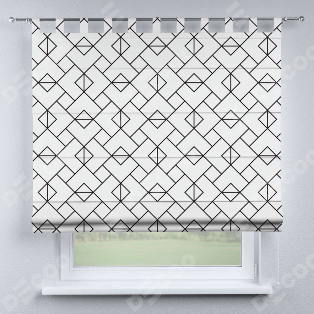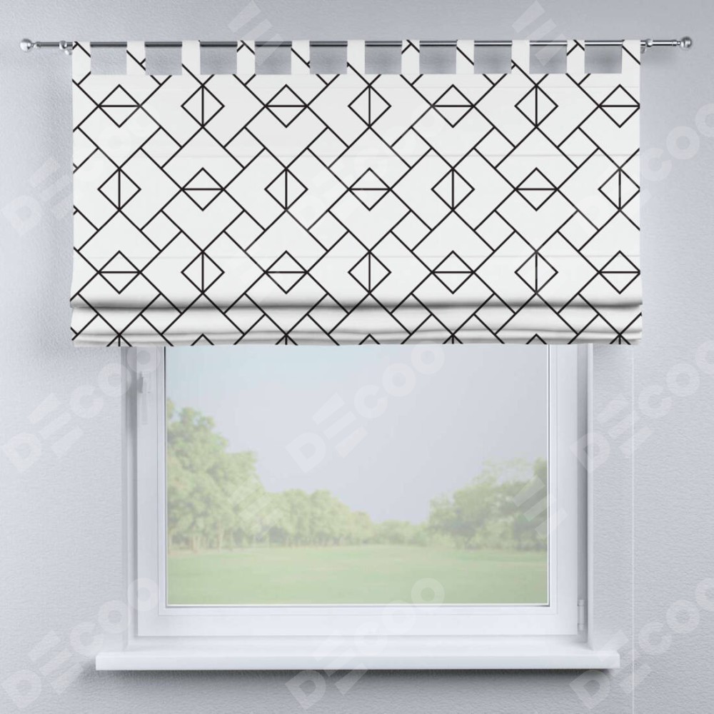 Римская штора производителя «Cortin», используется для проёма, пошита из ткани блэкаут с нанесением сублимационной печати «Геометрический орнамент». Данная модель пошита на петлях, комплектуется на выбор круглым карнизом и подходит для монтажа на стену. Римская штора на петлях имеет простую систему регулировки высоты, отличительным преимуществом данной модели является простой способ монтажа. Достаточно повесить ее на трубу и штора готова!