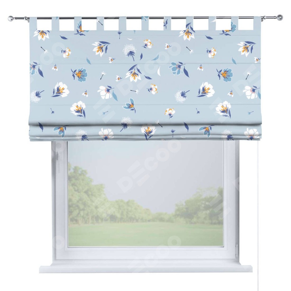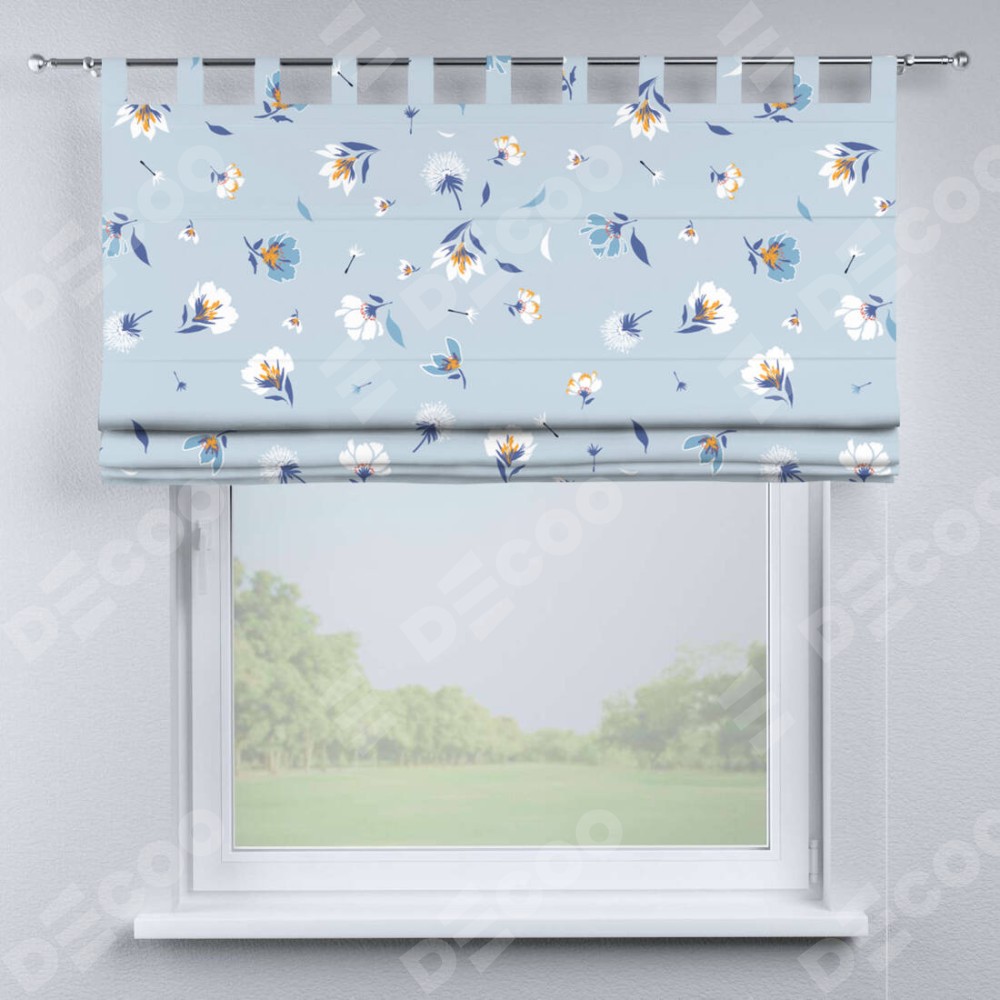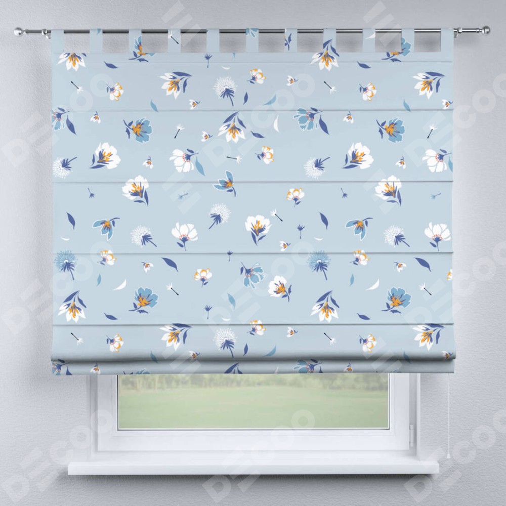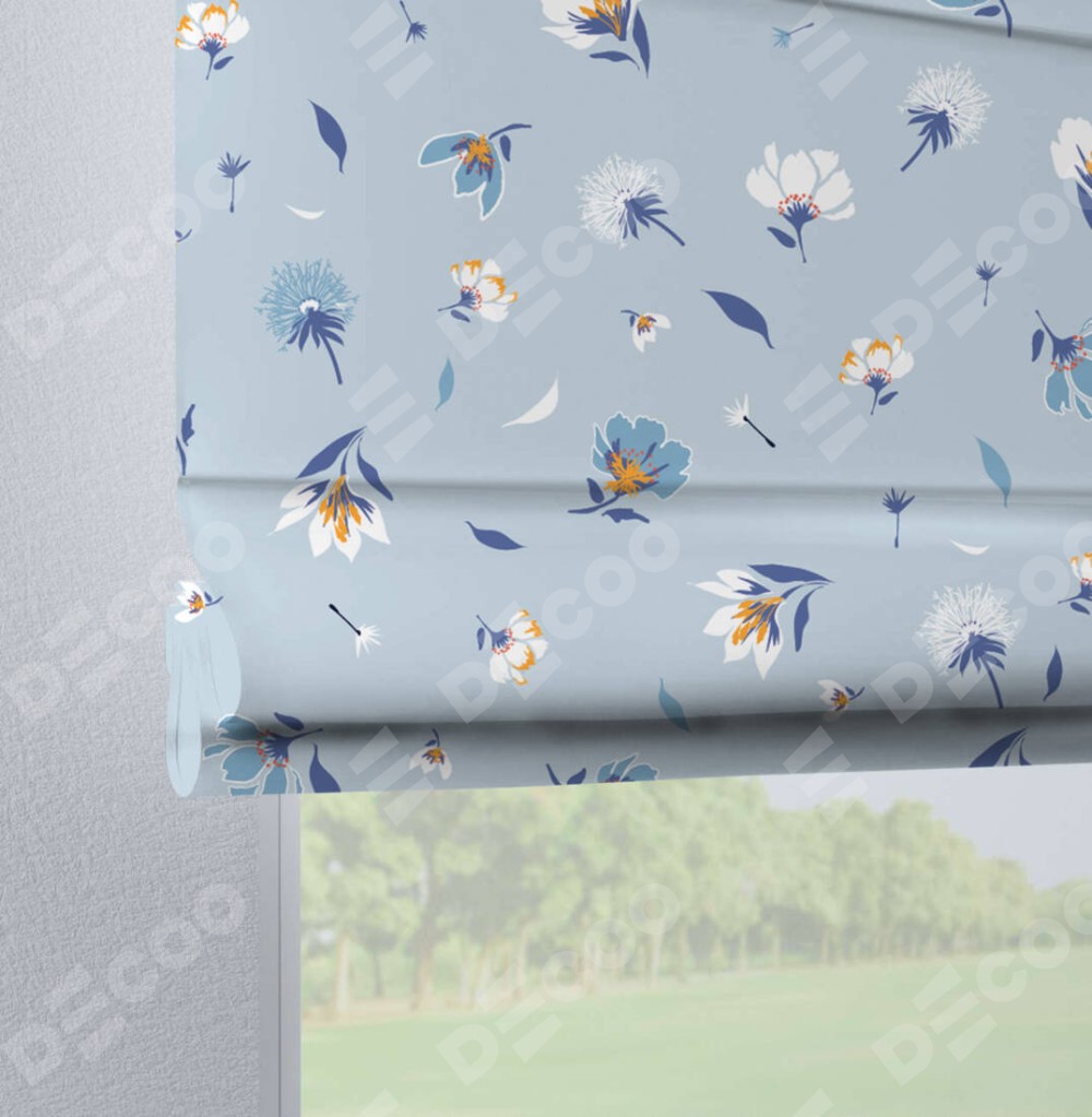 Римская штора на петлях «Голубые цветы»
