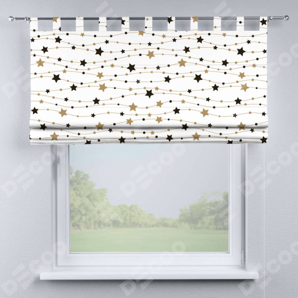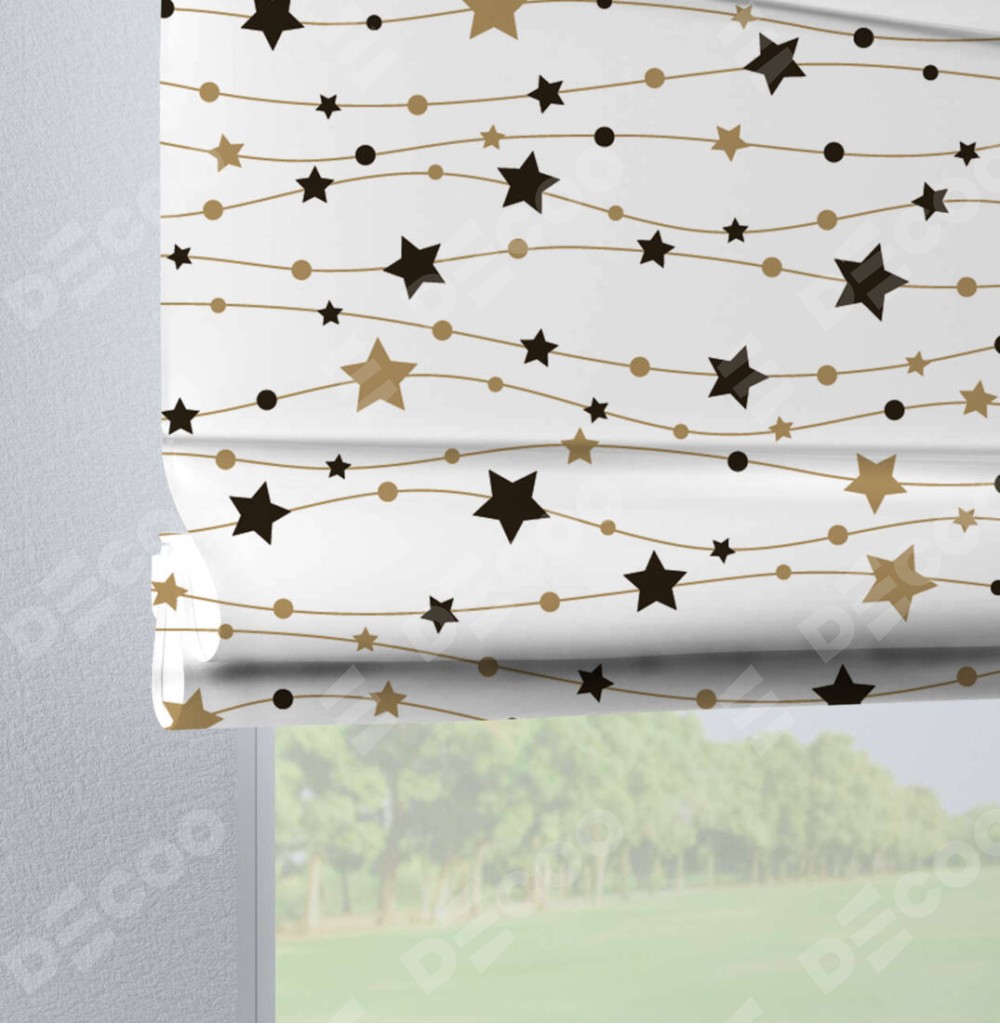 Римская штора производителя «Cortin», используется для проёма, пошита из ткани блэкаут с нанесением сублимационной печати «Звёздная нить». Данная модель пошита на петлях, комплектуется на выбор круглым карнизом и подходит для монтажа на стену. Римская штора на петлях имеет простую систему регулировки высоты, отличительным преимуществом данной модели является простой способ монтажа. Достаточно повесить ее на трубу и штора готова!