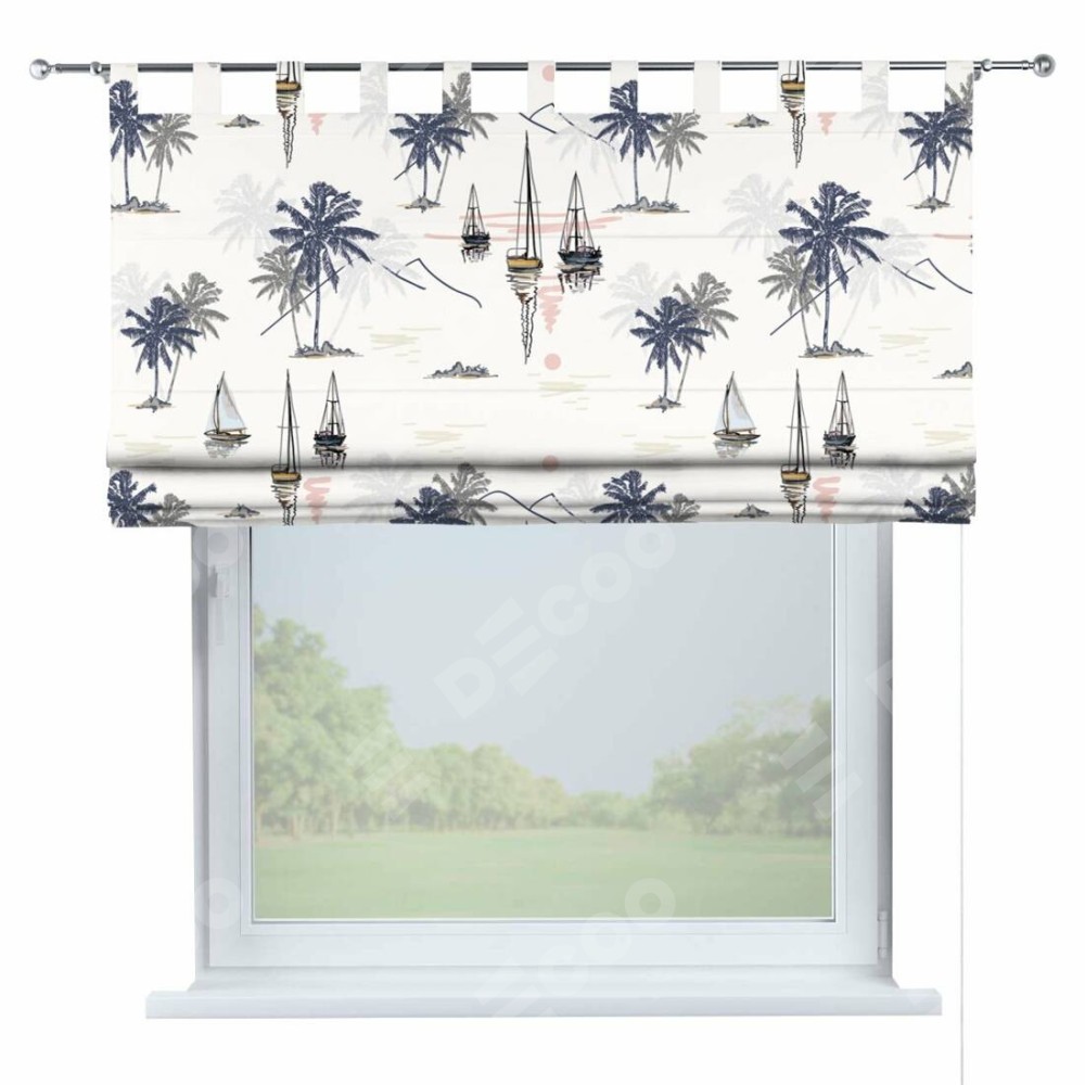 Римская штора производителя «Cortin», используется для проёма, пошита из ткани блэкаут с нанесением сублимационной печати «Морское путешествие». Данная модель пошита на петлях, комплектуется на выбор круглым карнизом и подходит для монтажа на стену. Римская штора на петлях имеет простую систему регулировки высоты, отличительным преимуществом данной модели является простой способ монтажа. Достаточно повесить ее на трубу и штора готова!