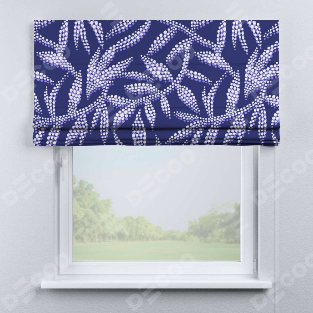 Римская штора производителя «Cortin», используется для проёма, пошита из ткани блэкаут с нанесением сублимационной печати «Ночные цветы». Имеет универсальный механизм и подходит для монтажа: на потолок, на стену и в нишу.