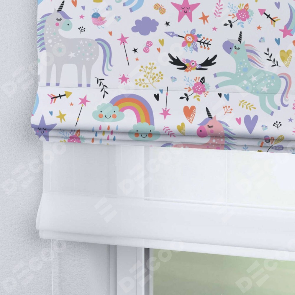 Римская штора «Кортин» день-ночь «Радужные единороги»