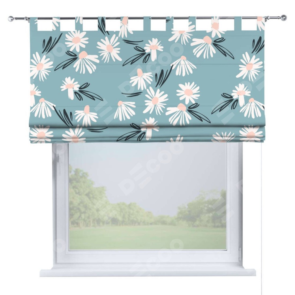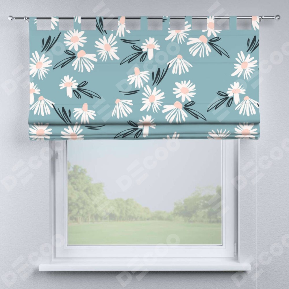Римская штора производителя «Cortin», используется для проёма, пошита из ткани блэкаут с нанесением сублимационной печати «Чудесные ромашки». Данная модель пошита на петлях, комплектуется на выбор круглым карнизом и подходит для монтажа на стену. Римская штора на петлях имеет простую систему регулировки высоты, отличительным преимуществом данной модели является простой способ монтажа. Достаточно повесить ее на трубу и штора готова!