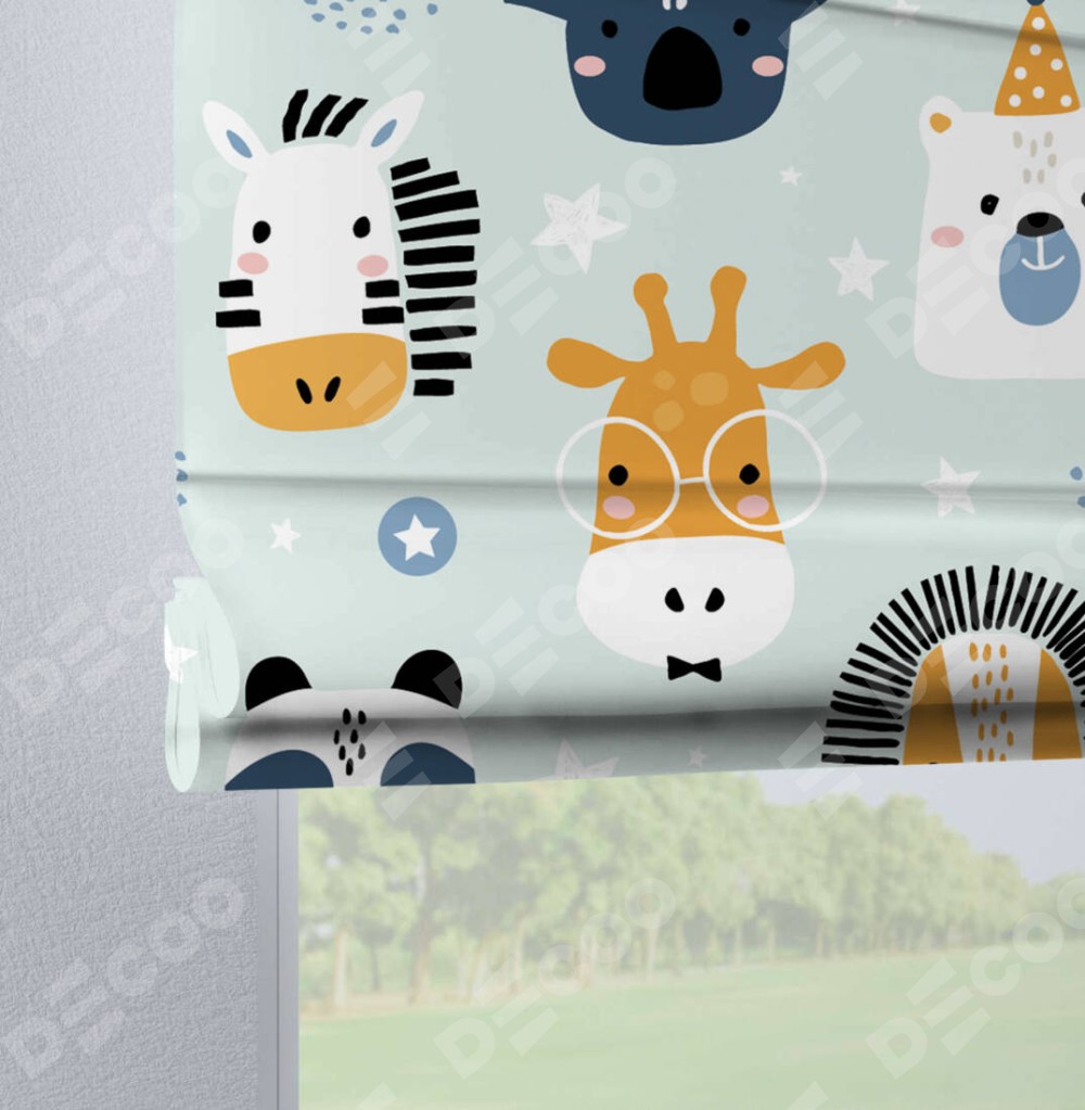 Римская штора производителя «Cortin», используется для проёма, пошита из ткани блэкаут с нанесением сублимационной печати «Чудесный зоопарк». Данная модель пошита на петлях, комплектуется на выбор круглым карнизом и подходит для монтажа на стену. Римская штора на петлях имеет простую систему регулировки высоты, отличительным преимуществом данной модели является простой способ монтажа. Достаточно повесить ее на трубу и штора готова!