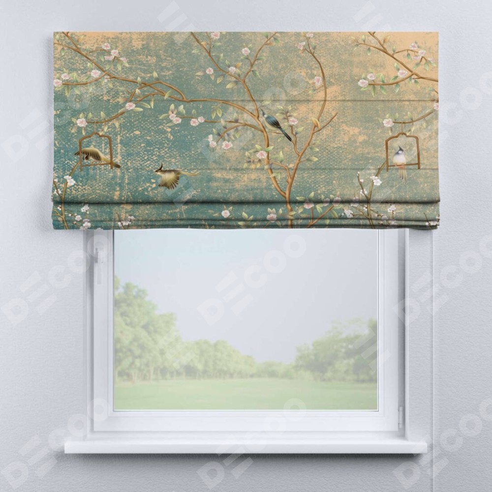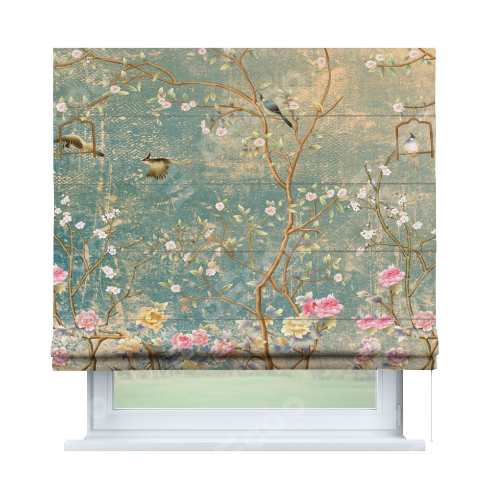 Римская штора производителя «Cortin», используется для проёма, пошита из ткани блэкаут с нанесением сублимационной печати «Цветущий сад». Имеет универсальный механизм и подходит для монтажа: на потолок, на стену и в нишу.