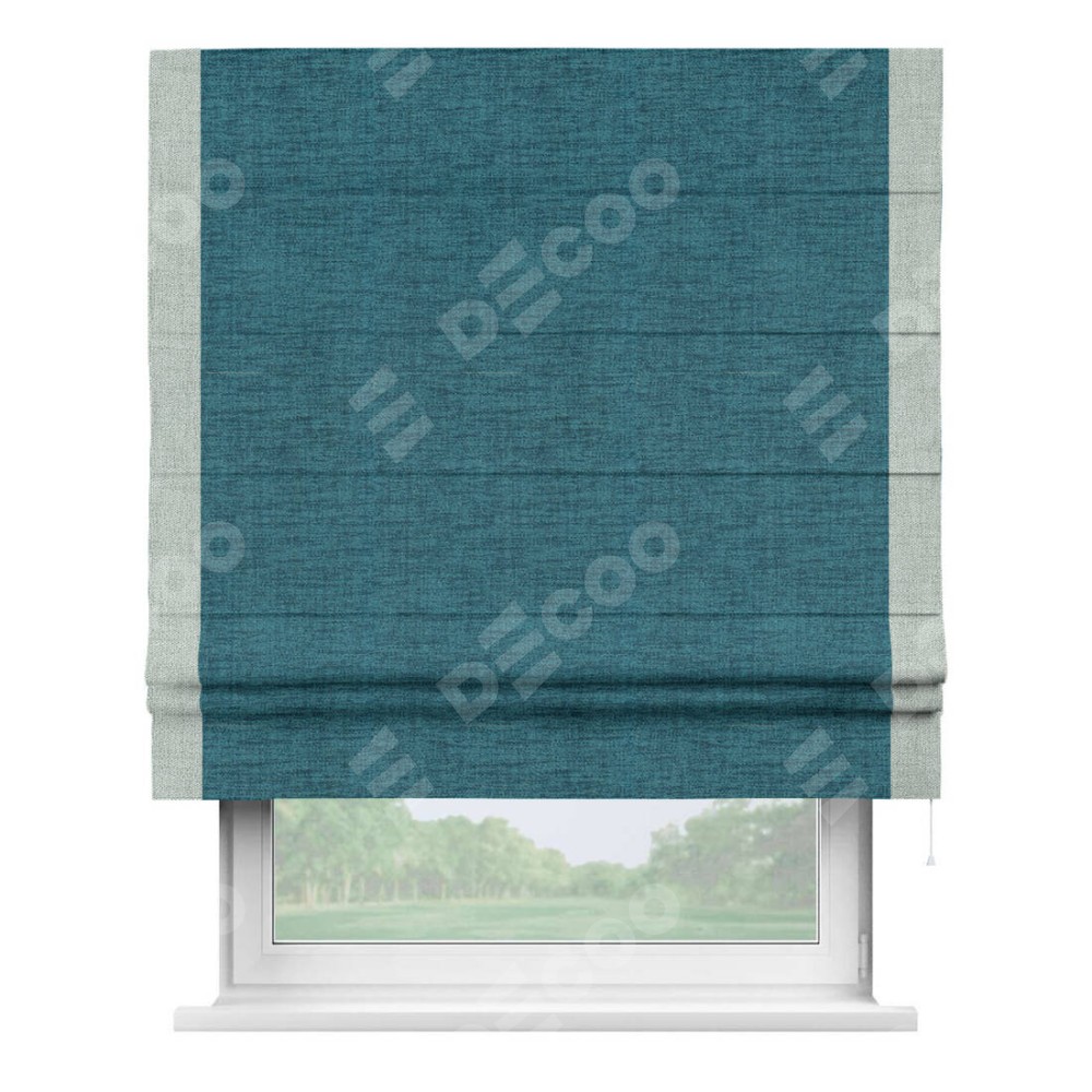 Римская штора «Кортин» с кантом Стрим Дуо, для проема, ткань рогожка димаут, синий