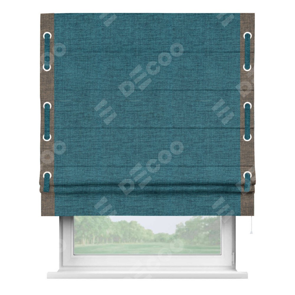 Римская штора «Кортин» с кантом Стрим Дуо (люверсы с пояском), для проема, ткань рогожка димаут, синий
