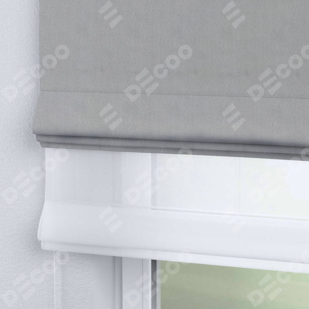 Римская штора день-ночь производителя «Cortin», используется для проёма, пошита из двух полотен, с лицевой стороны блэкаут с блеском тёмно-серый артикул 34634, вторая ткань тюль (по стандарту комплектуется тюль белого цвета артикул V-01). Изнаночная сторона основного материала черного цвета, что обеспечивает необходимую светонепроницаемость. Имеет универсальный механизм и подходит для монтажа: на потолок, на стену и в нишу.