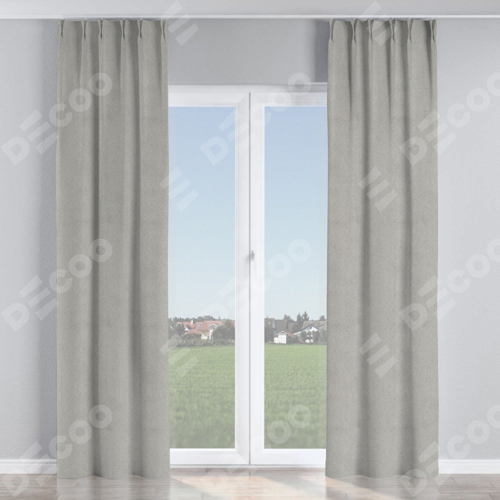 Комплект прямых штор, от производителя «Cortin», пошиты из ткани блэкаут с блеском тёмно-серый, артикул ткани 34634. С изнаночной стороны в верхней части штор пристрачивается шторная лента с декоративными складками «Кустик». Обратная сторона основного материала черного цвета, что обеспечивает необходимую светонепроницаемость. Для создания элегантных складок прямые шторы шьются по стандарту с коэффициентом 1:2 (на 100 см. ширины проёма 200 см. ширины ткани).