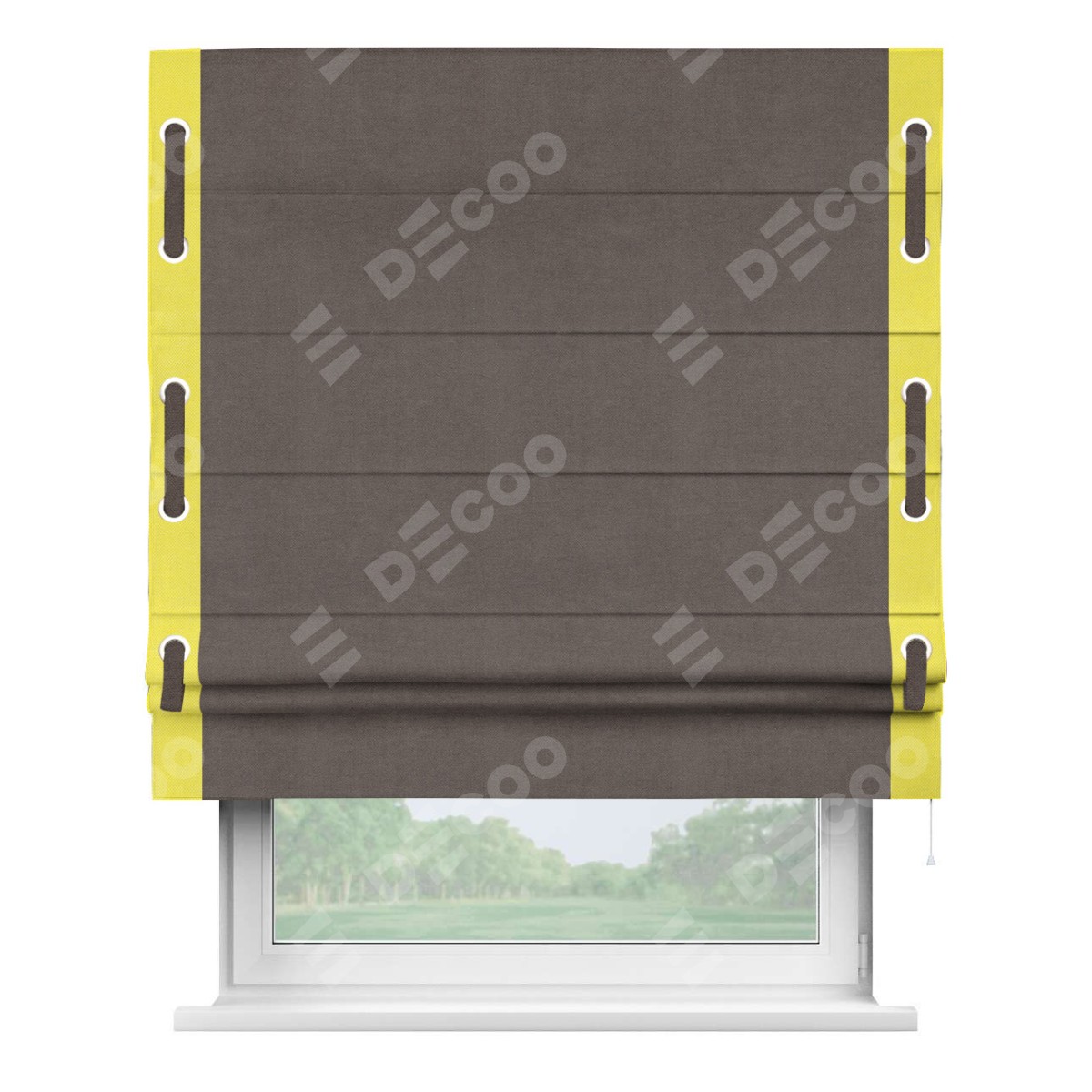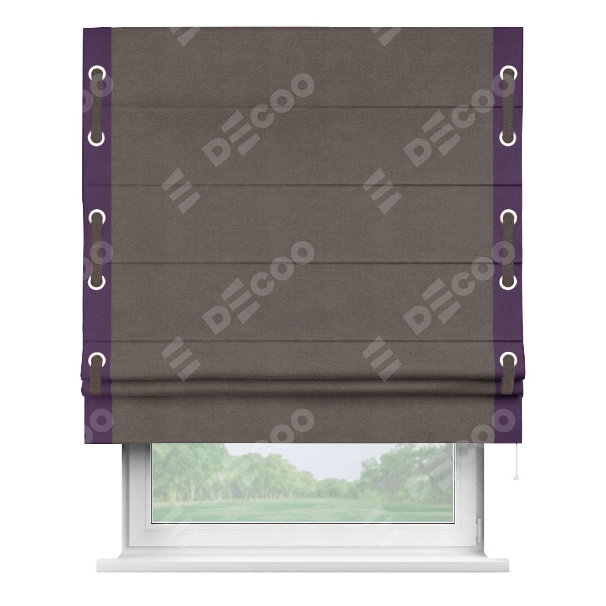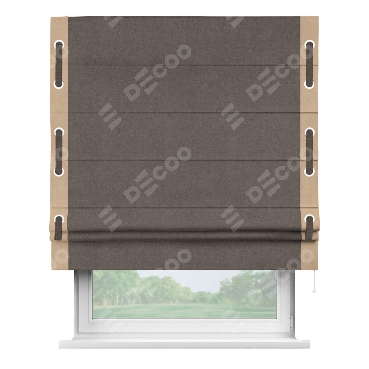 Римская штора «Кортин» с кантом Стрим Дуо (люверсы с пояском), для проема, ткань вельвет коричневый