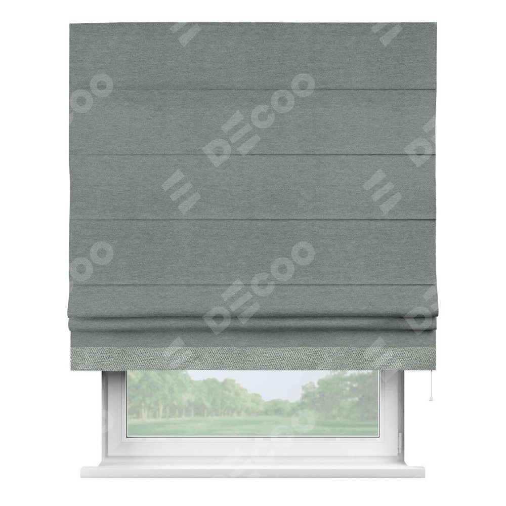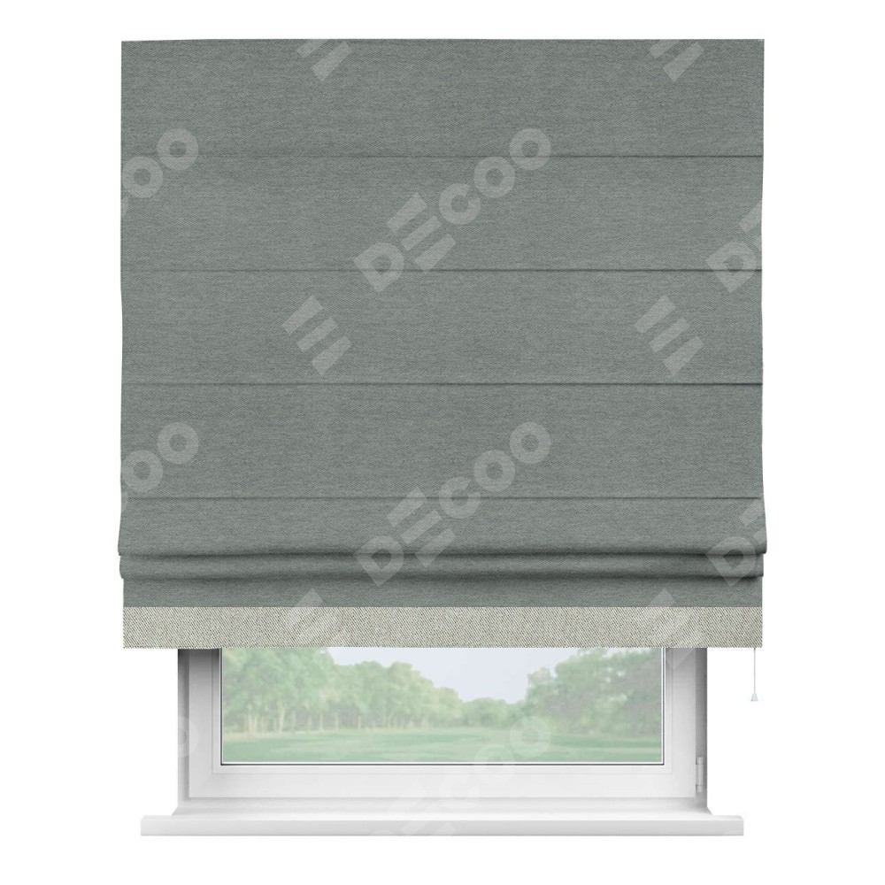 Римская штора производителя «Cortin», используется для проёма, пошита из ткани твид блэкаут серый, артикул 21577. Отделка шторы кантом «Джестер», ткань для канта используется из твида разной расцветки на выбор. Имеет универсальный механизм и подходит для монтажа: на потолок, на стену и в нишу.