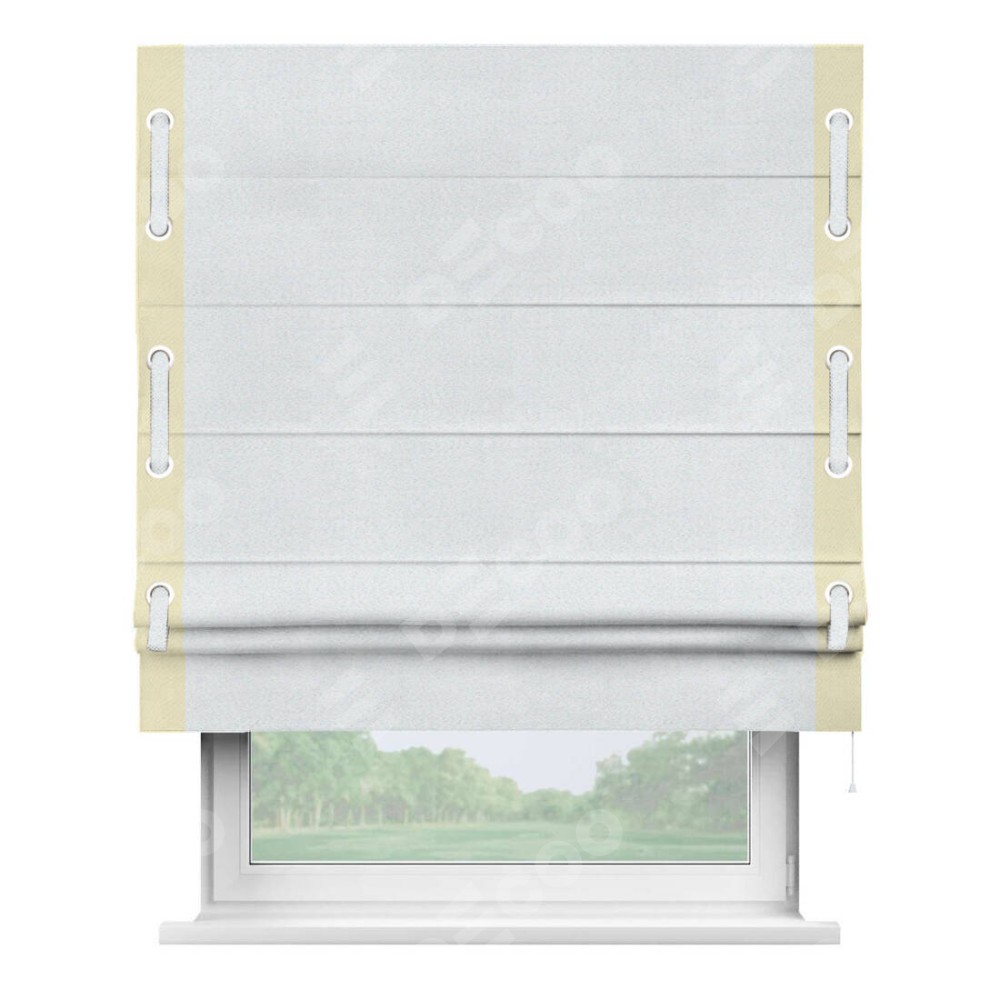 Римская штора «Кортин» с кантом Стрим Дуо (люверсы с пояском), для проема, ткань блэкаут однотонный дымчато-белый