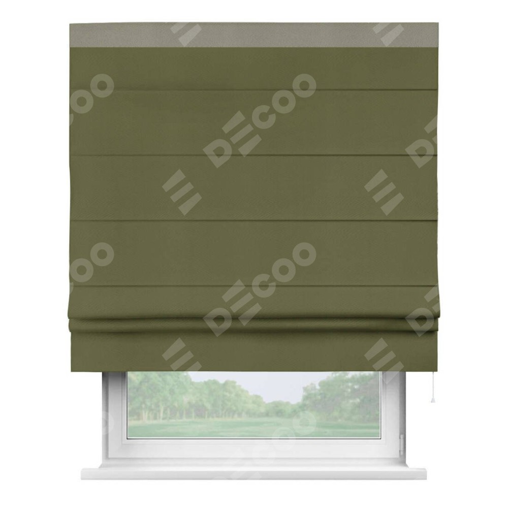 Римская штора «Кортин» с кантом Кинг, для проема, ткань блэкаут однотонный зелёный