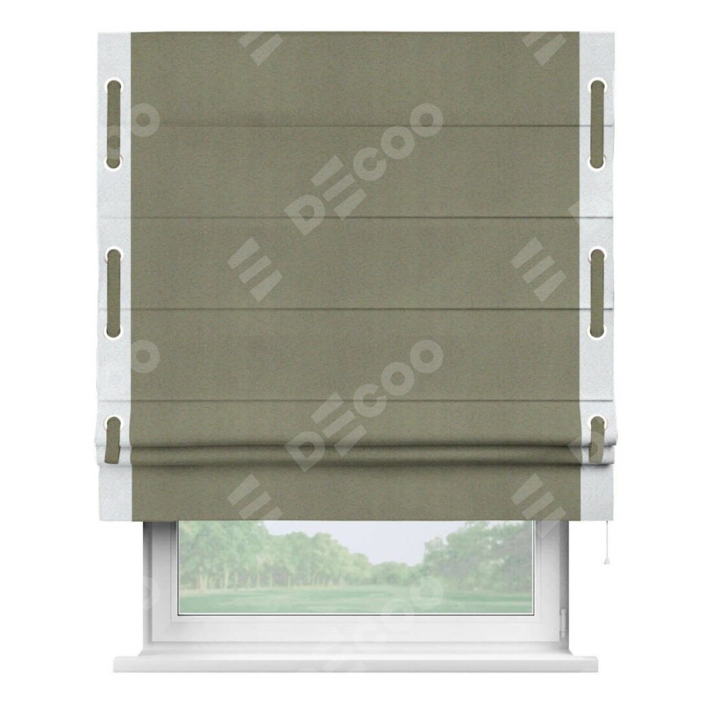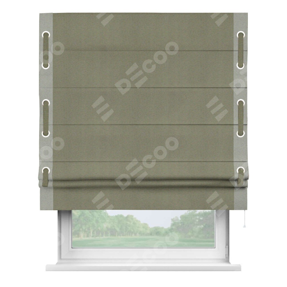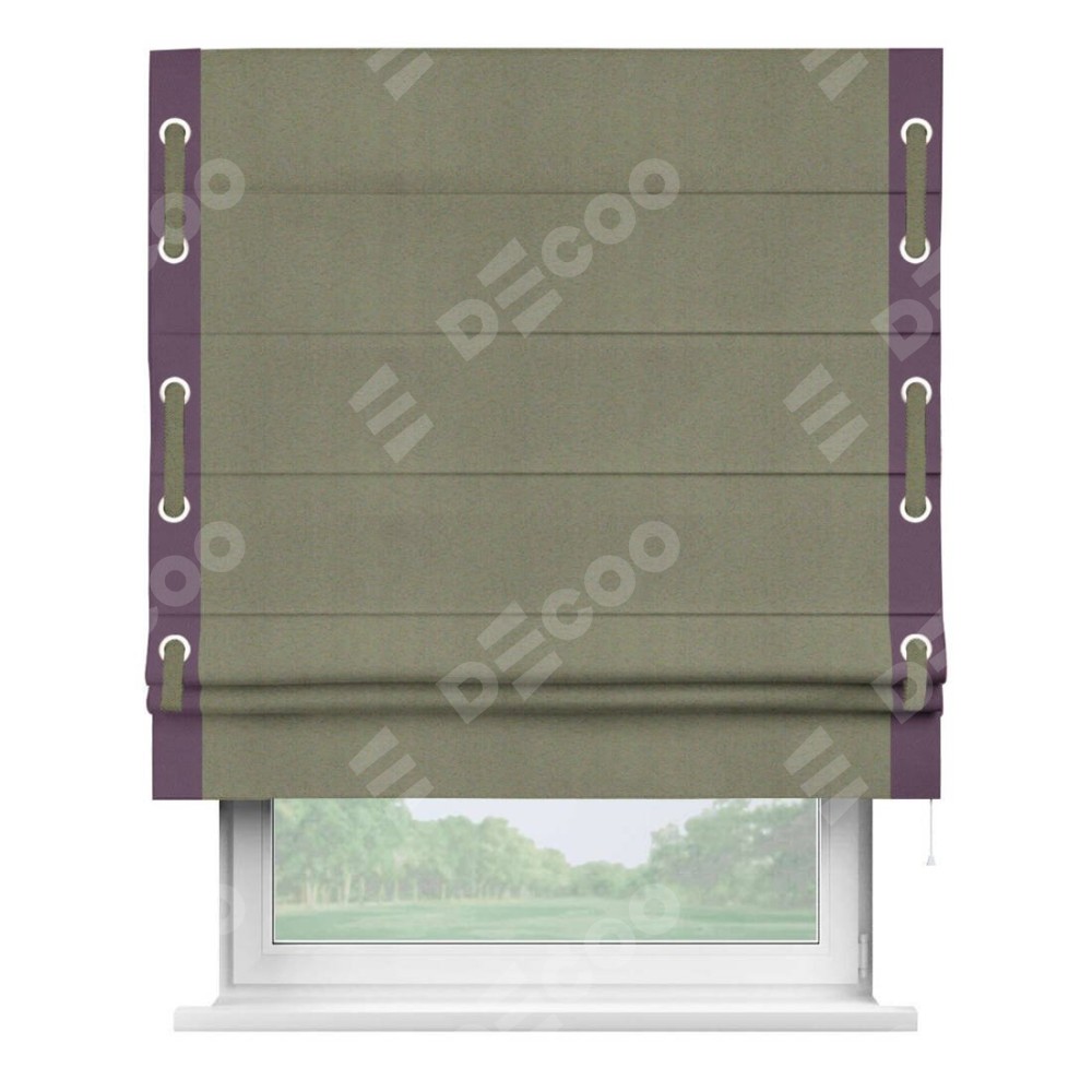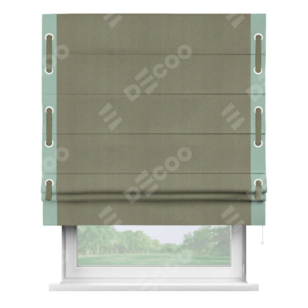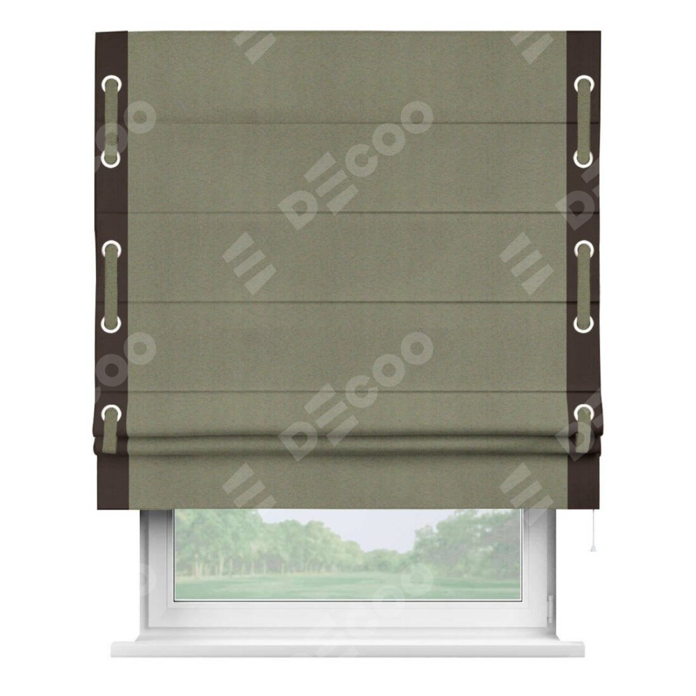 Римская штора «Кортин» с кантом Стрим Дуо (люверсы с пояском), для проема, ткань блэкаут однотонный серо-коричневый