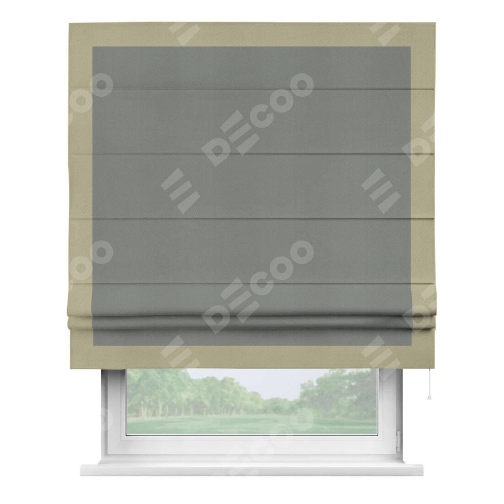 Римская штора «Кортин» с кантом Чесс, для проема, ткань блэкаут однотонный тёмно-серый