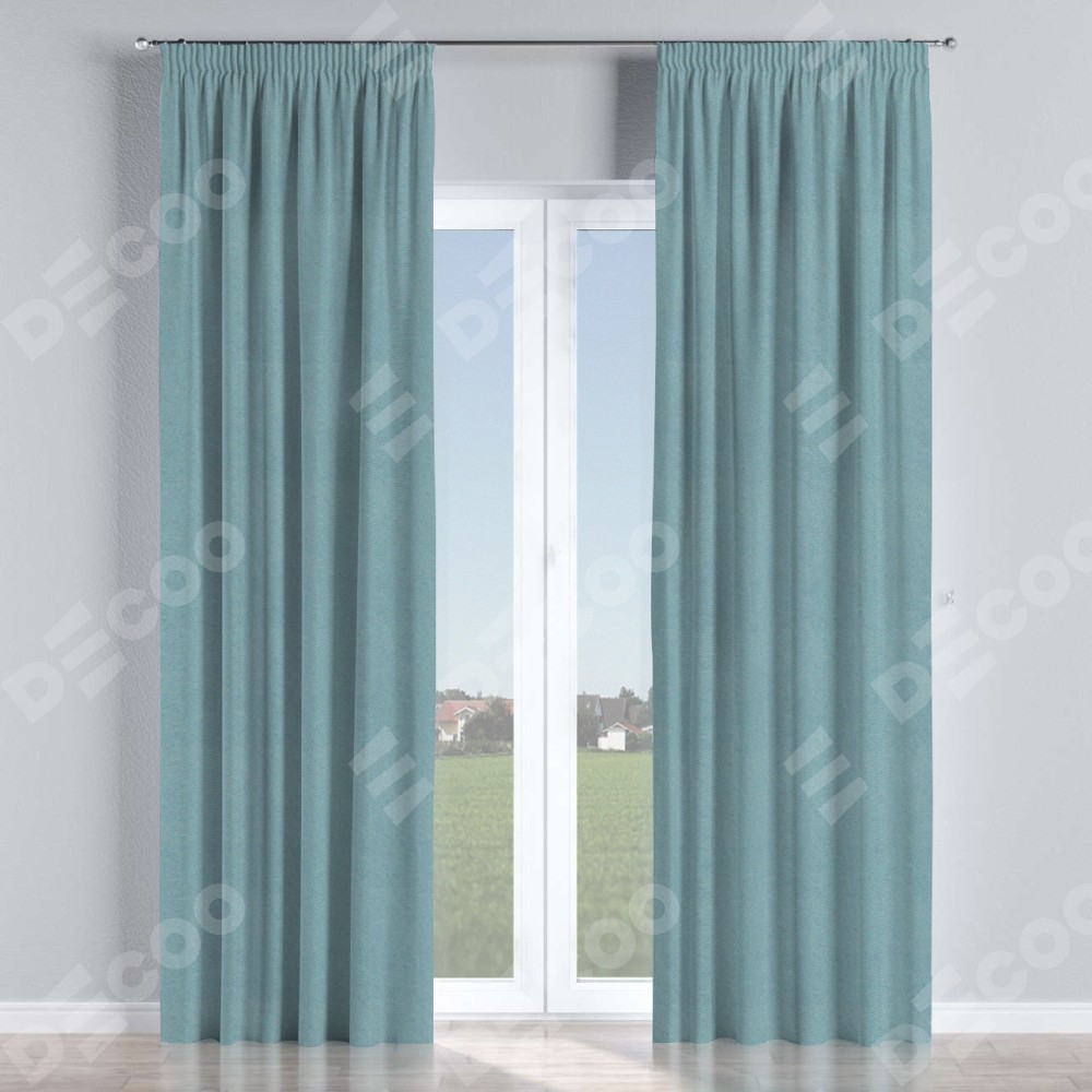Комплект прямых штор, от производителя «Cortin», пошиты из ткани блэкаут с блеском синий, артикул ткани 34625. С изнаночной стороны в верхней части штор пристрачивается шторная лента с декоративными складками «Карандаш». Обратная сторона основного материала черного цвета, что обеспечивает необходимую светонепроницаемость. Для создания элегантных складок прямые шторы шьются по стандарту с коэффициентом 1:2 (на 100 см. ширины проёма 200 см. ширины ткани).
