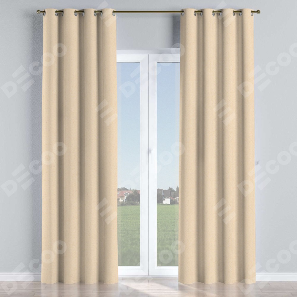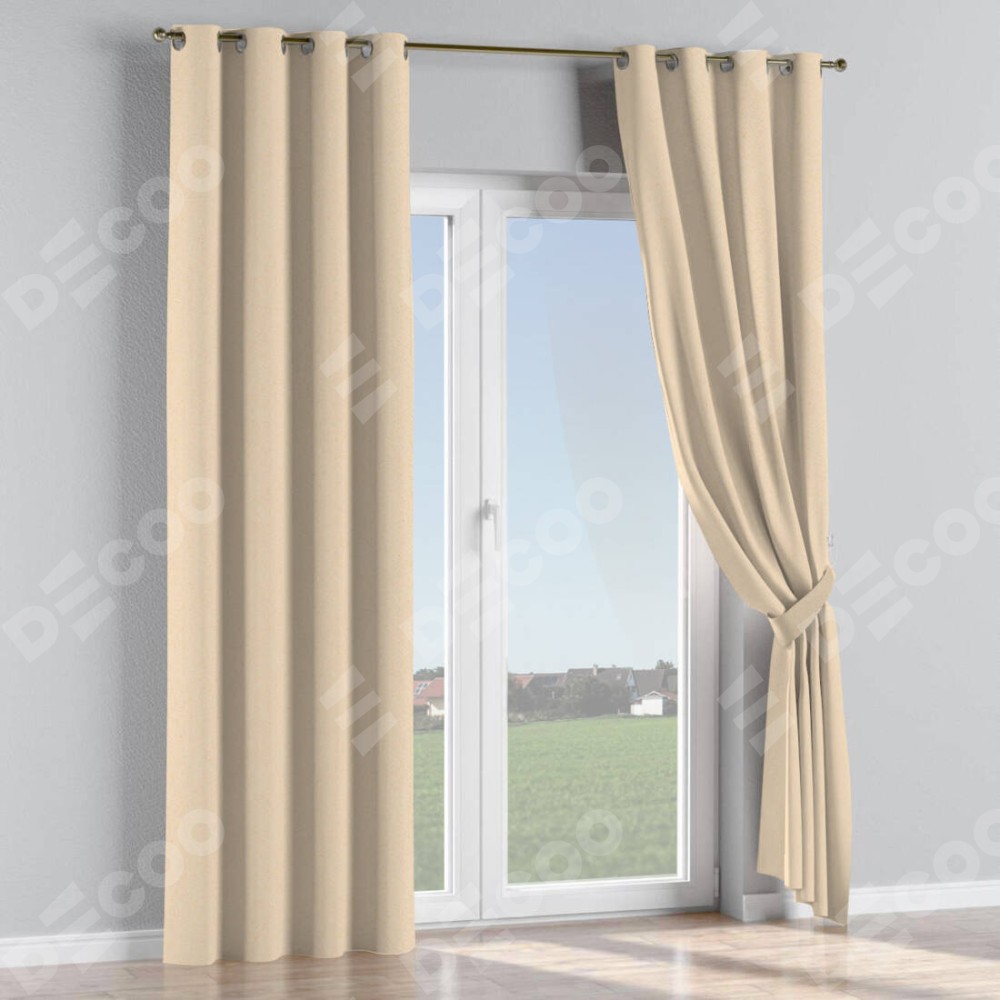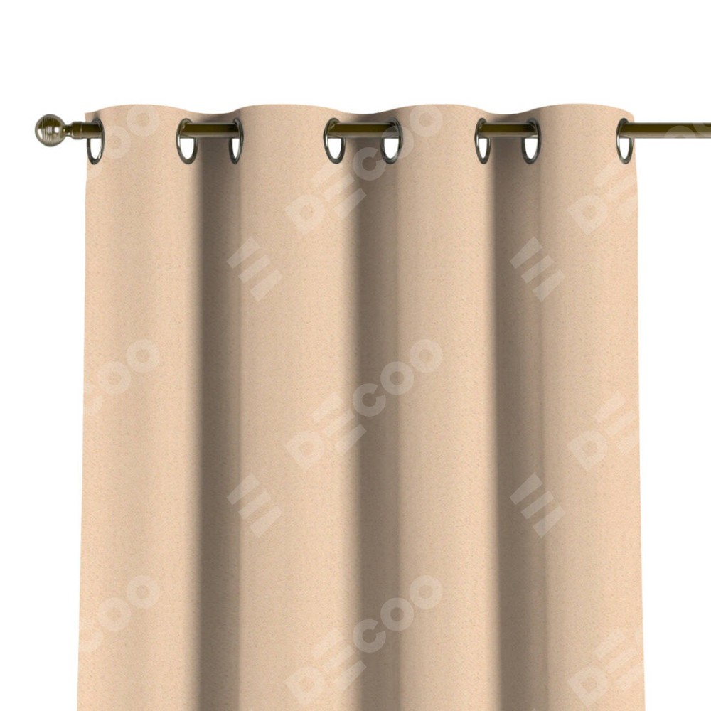 Комплект прямых штор, от производителя «Cortin», пошиты из ткани блэкаут с блеском бежевый, артикул ткани 34627. Обратная сторона основного материала черного цвета, что обеспечивает необходимую светонепроницаемость. Данная модель пошита на люверсах, комплектуется на выбор круглым карнизом и подходит для монтажа на стену или потолок. Прямые шторы на люверсах шьются по стандарту с коэффициентом 1/2 (на 100 см. ширины проёма 200 см. ширины ткани), отличительным преимуществом данной модели является простой способ монтажа. Достаточно повесить ее на трубу и штора готова!