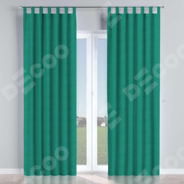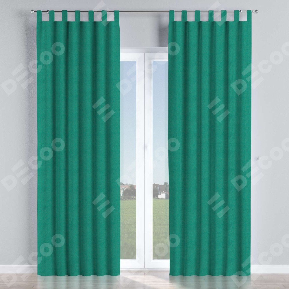 Комплект прямых штор, от производителя «Cortin», пошиты из ткани блэкаут с блеском изумрудный, артикул ткани 34628. Обратная сторона основного материала черного цвета, что обеспечивает необходимую светонепроницаемость. Данная модель пошита на петлях, комплектуется на выбор круглым карнизом и подходит для монтажа на стену или потолок. Прямые шторы на петлях шьются по стандарту с коэффициентом 1/2 (на 100 см. ширины проёма 200 см. ширины ткани), отличительным преимуществом данной модели является простой способ монтажа. Достаточно повесить ее на трубу и штора готова!
