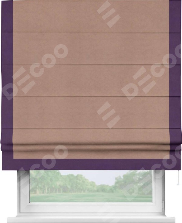 Римская штора «Кортин» с кантом Виктория, для проема, ткань вельвет брусничный джем