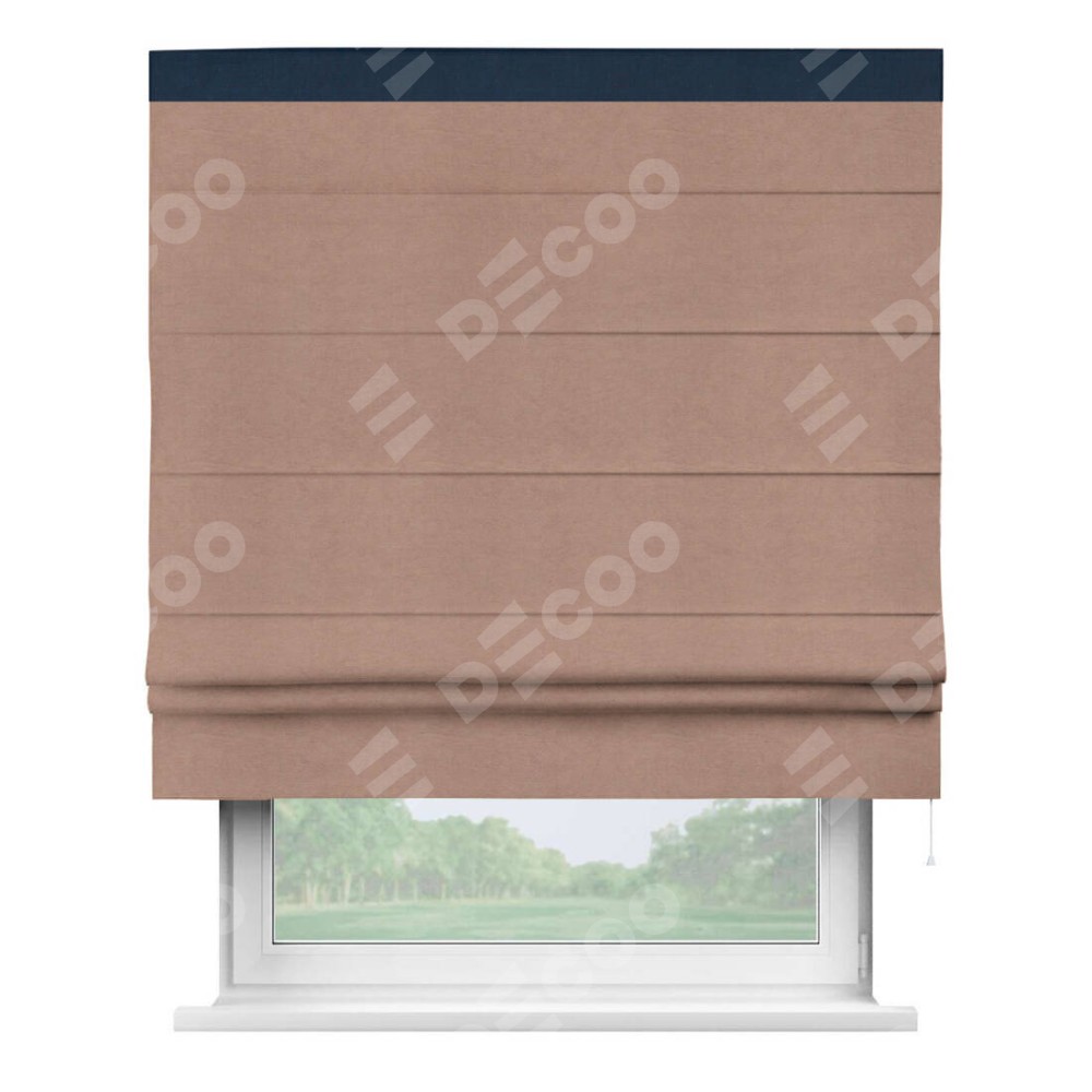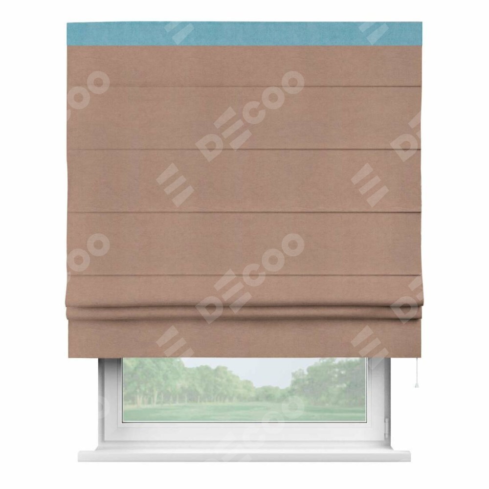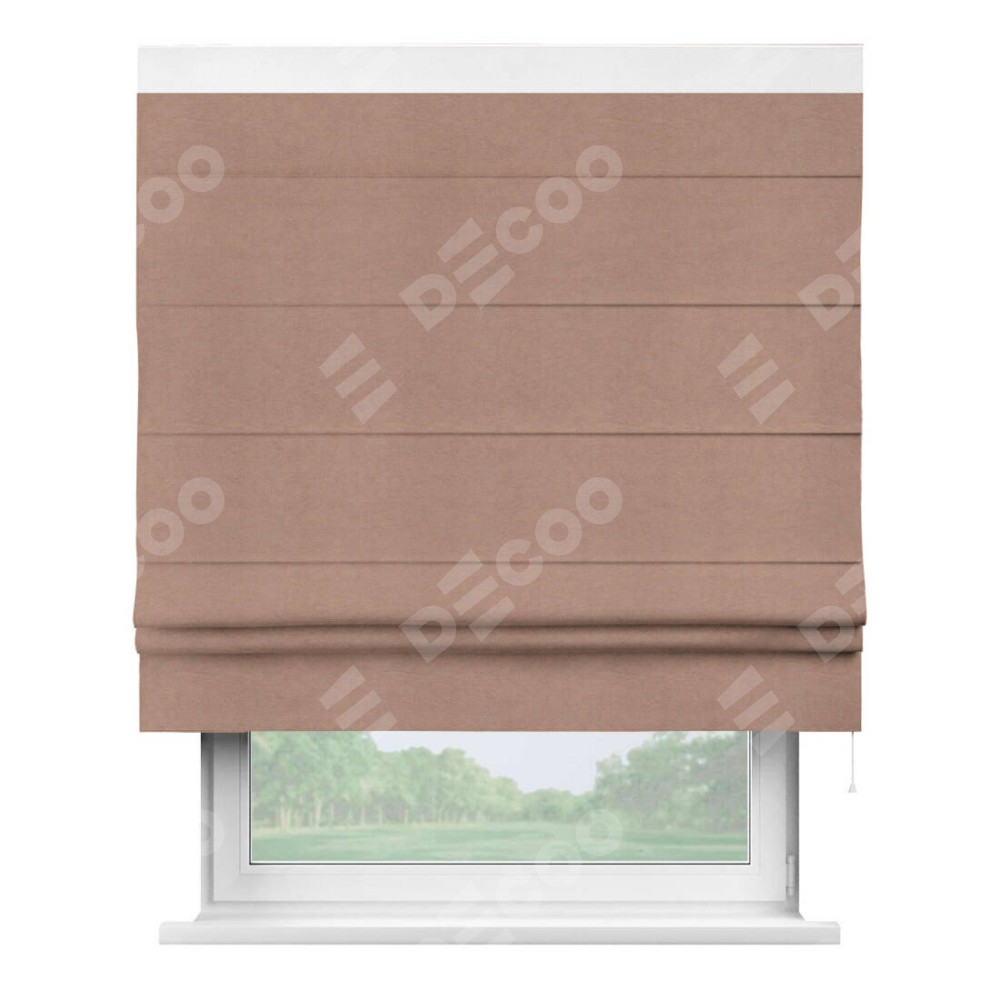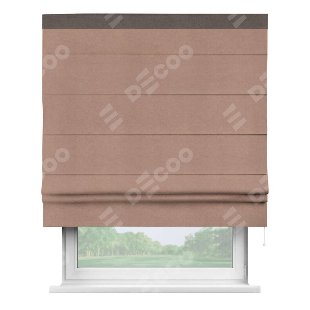 Римская штора производителя «Cortin», используется для проёма, пошита из ткани вельвет брусничный джем, артикул ткани 17750. Отделка шторы кантом «Кинг», ткань для канта используется из вельвета разной расцветки на выбор. Имеет универсальный механизм и подходит для монтажа: на потолок, на стену и в нишу.