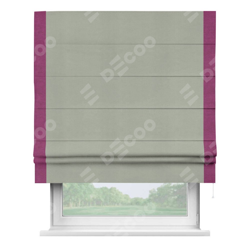 Римская штора «Кортин» с кантом Стрим Дуо, для проема, ткань вельвет cветло-серый