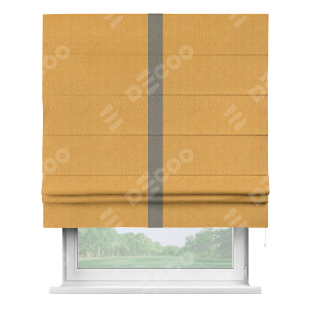 Римская штора «Кортин» с кантом Хайвэй, для проема, ткань блэкаут с блеском золотой