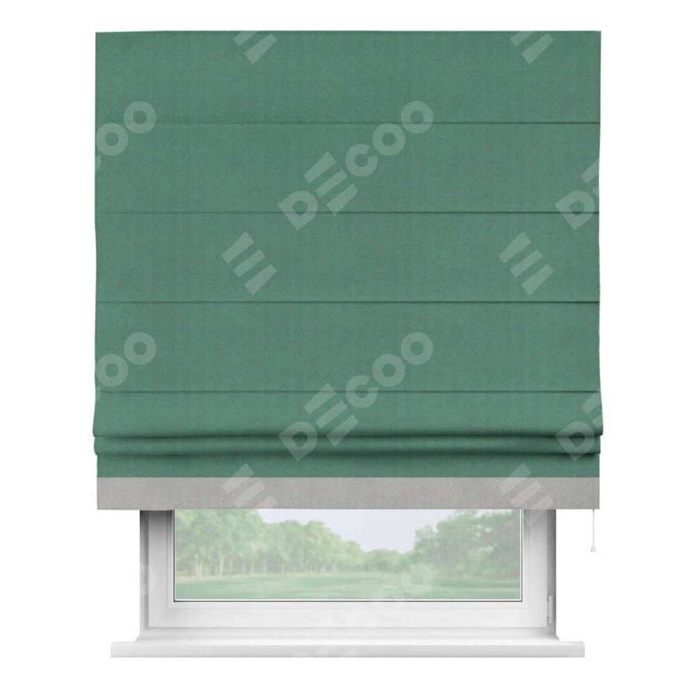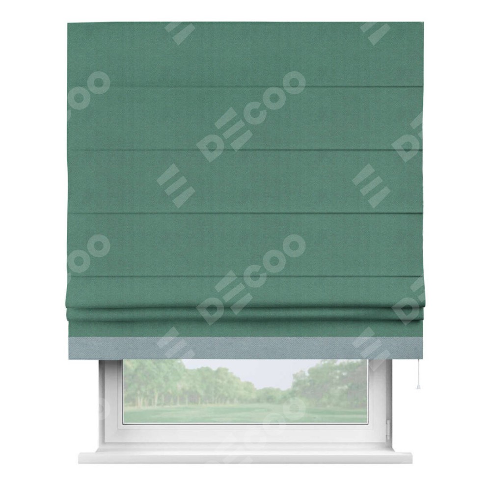 Римская штора «Кортин» с кантом Джестер, для проема, ткань блэкаут с блеском изумрудный