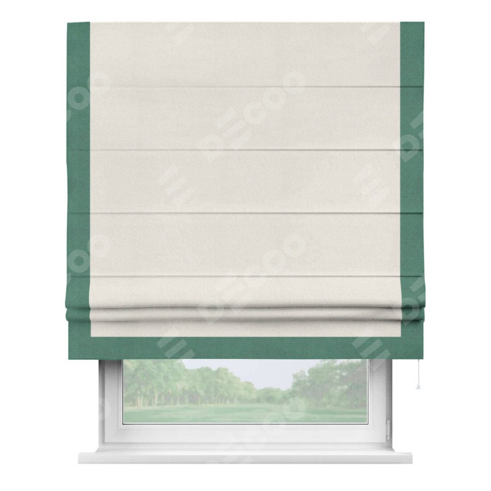 Римская штора производителя «Cortin», используется для проёма, пошита из ткани блэкаут с блеском светло-серый, артикул 34633. Отделка шторы кантом «Виктория», ткань для канта используется из блэкаута с блеском разной расцветки на выбор. Изнаночная сторона материала черного цвета, что обеспечивает необходимую светонепроницаемость. Имеет универсальный механизм и подходит для монтажа: на потолок, на стену и в нишу.