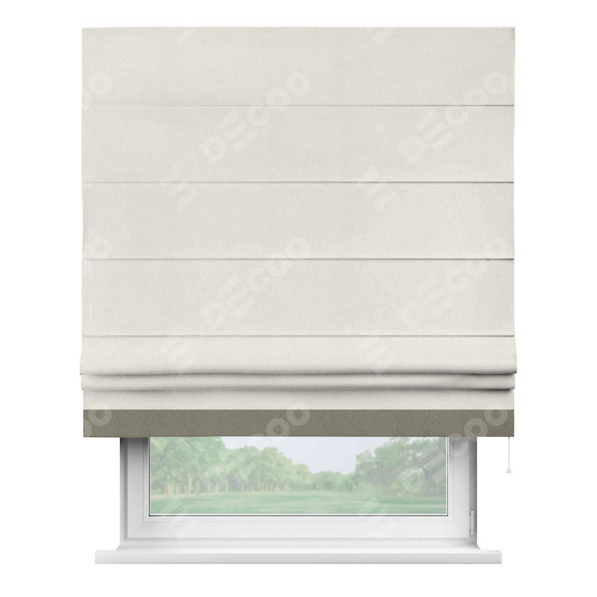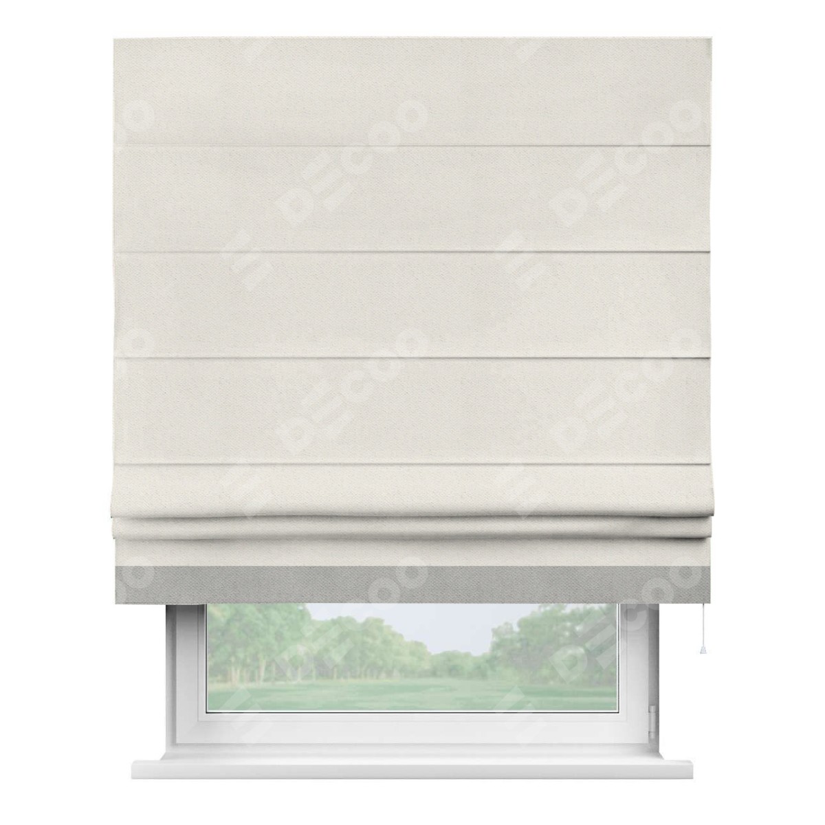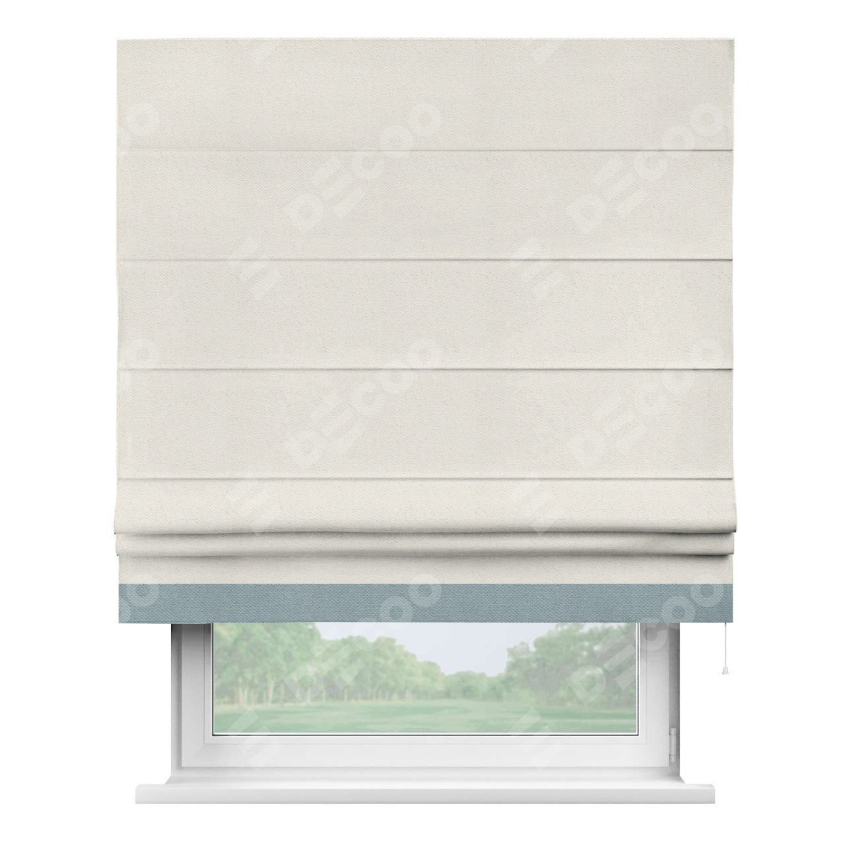 Римская штора производителя «Cortin», используется для проёма, пошита из ткани блэкаут с блеском светло-серый, артикул 34633. Отделка шторы кантом «Джестер», ткань для канта используется из блэкаута с блеском разной расцветки на выбор. Изнаночная сторона материала черного цвета, что обеспечивает необходимую светонепроницаемость. Имеет универсальный механизм и подходит для монтажа: на потолок, на стену и в нишу.
