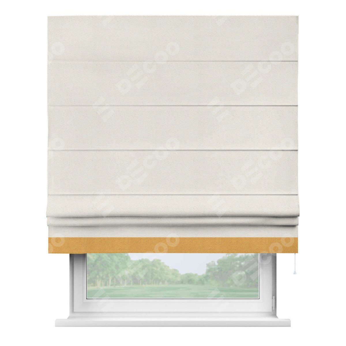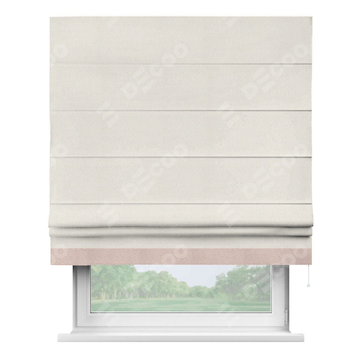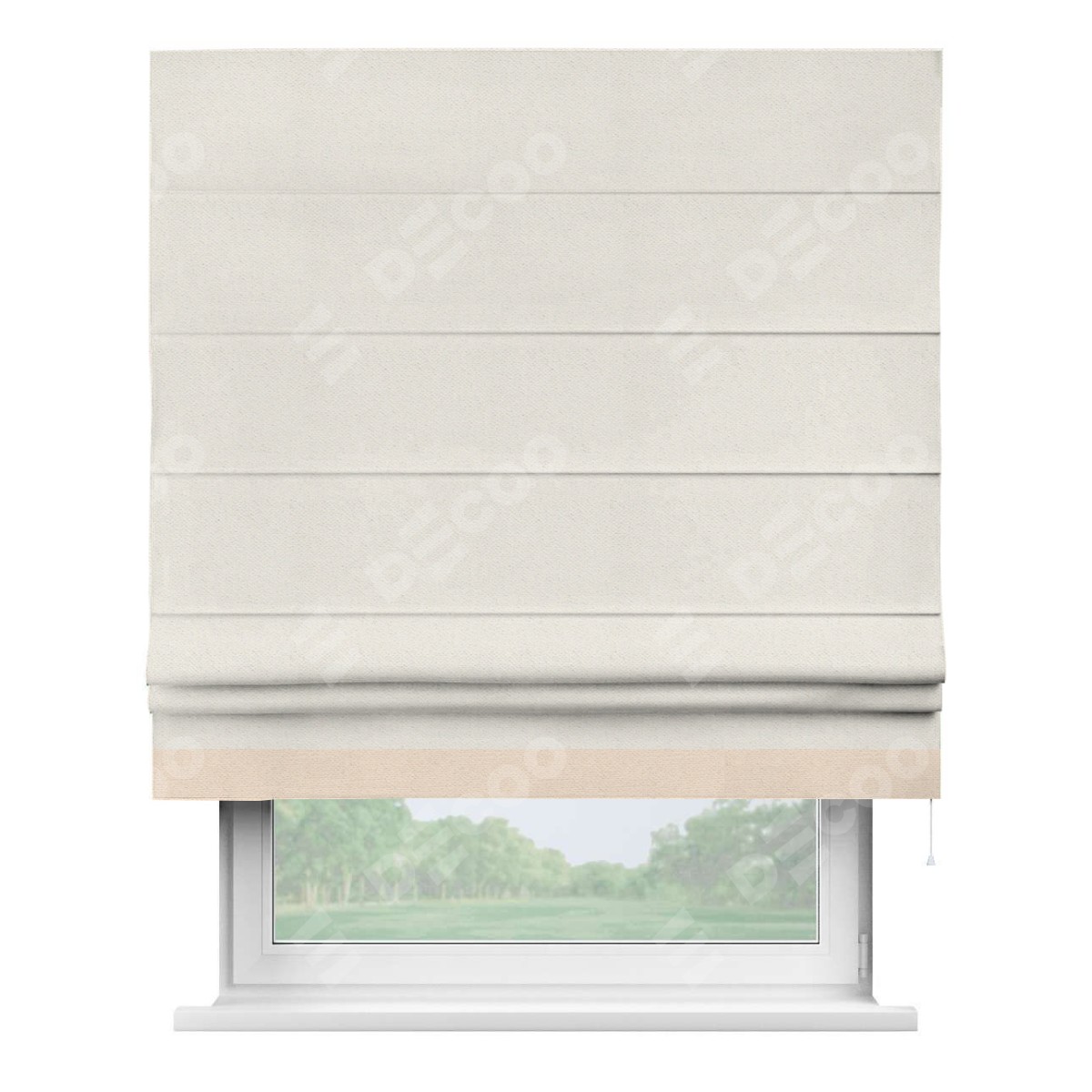 Римская штора производителя «Cortin», используется для проёма, пошита из ткани блэкаут с блеском светло-серый, артикул 34633. Отделка шторы кантом «Джестер», ткань для канта используется из блэкаута с блеском разной расцветки на выбор. Изнаночная сторона материала черного цвета, что обеспечивает необходимую светонепроницаемость. Имеет универсальный механизм и подходит для монтажа: на потолок, на стену и в нишу.
