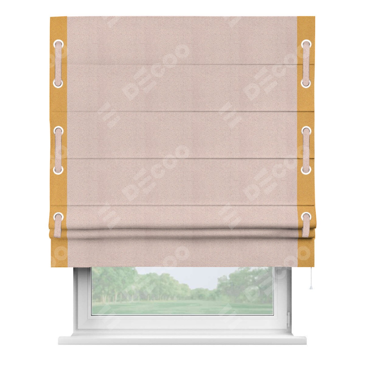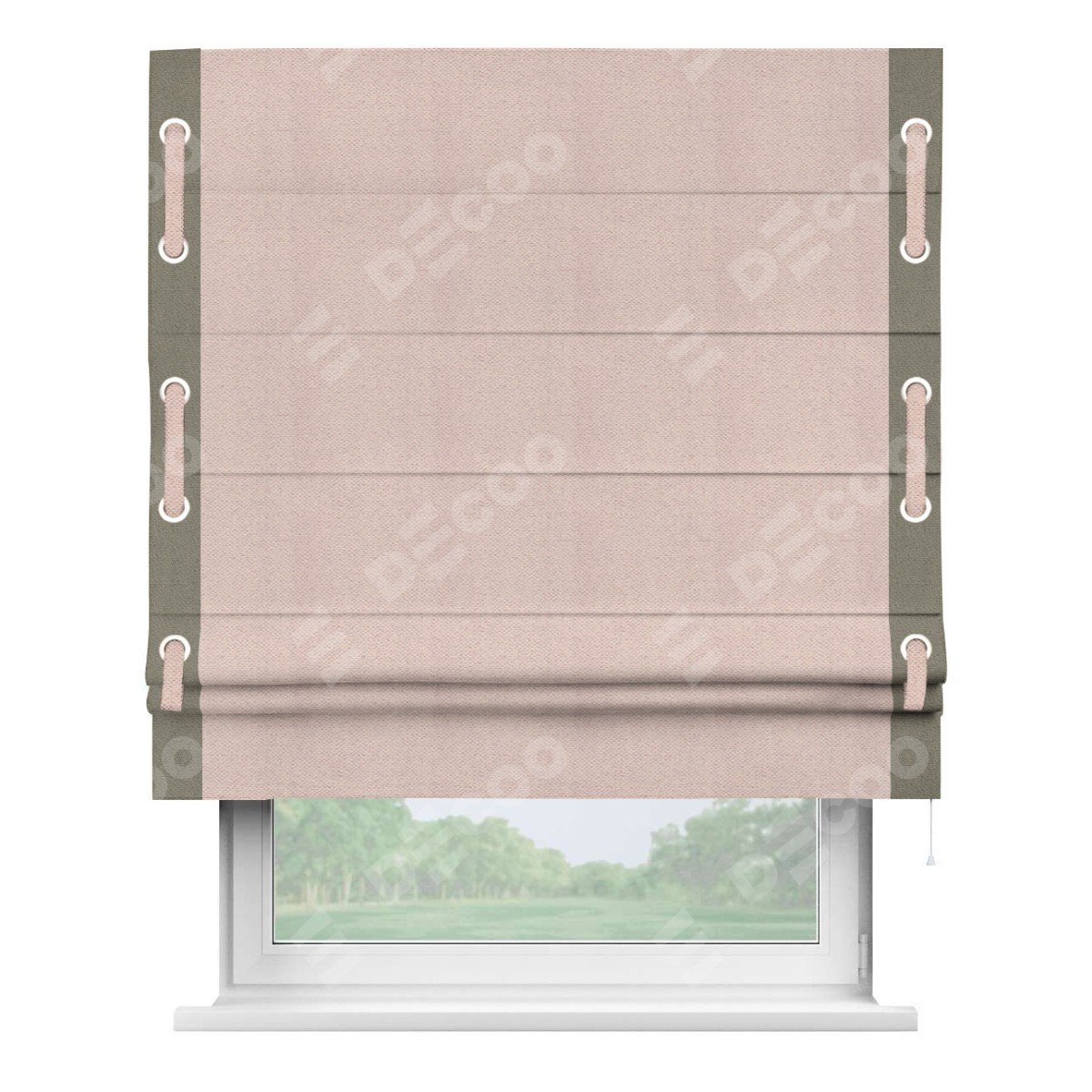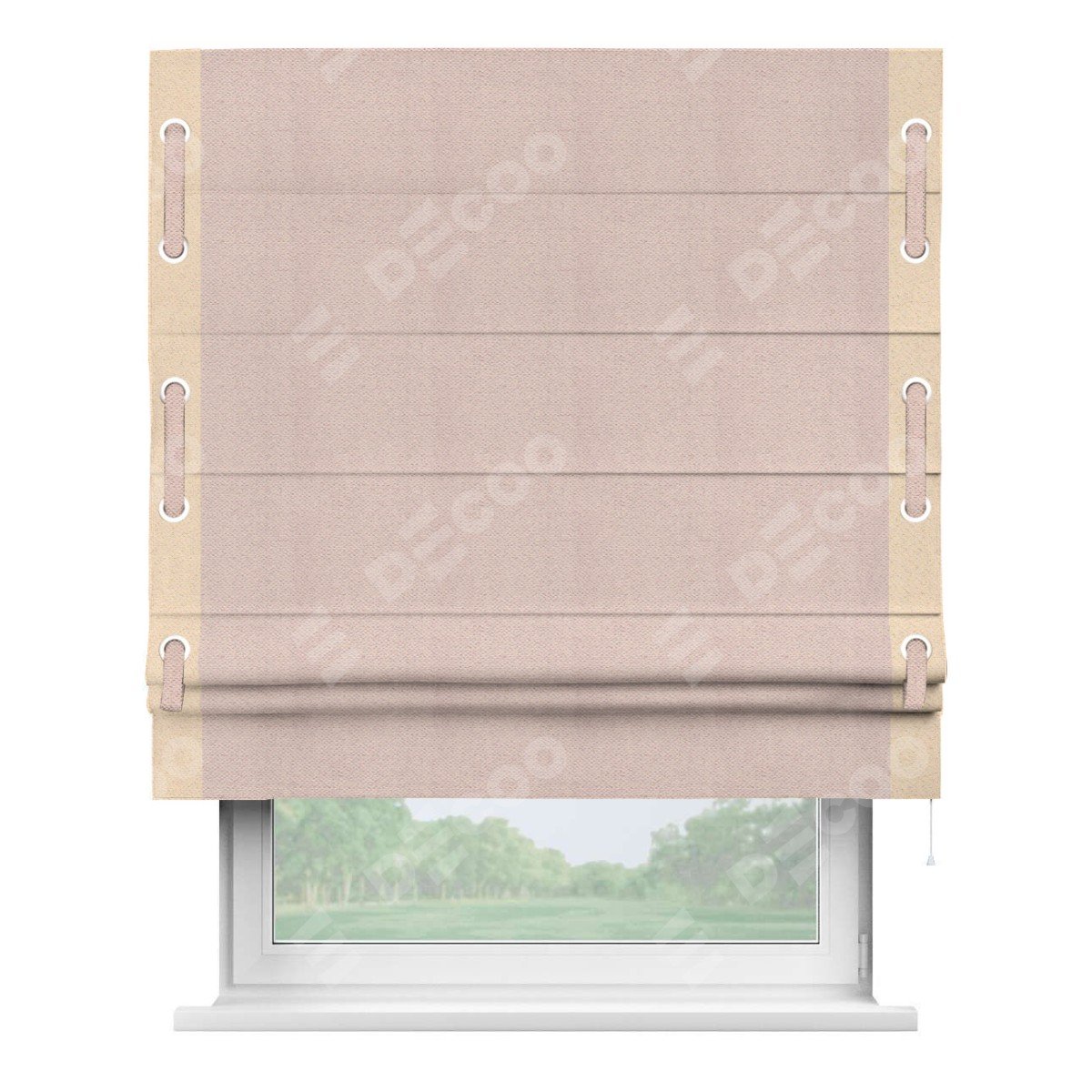 Римская штора производителя «Cortin», используется для проёма, пошита из ткани блэкаут с блеском сиреневый, артикул 34649. Отделка шторы кантом «Стрим Дуо» на кантах расположены люверсы с пояском, ткань для канта используется блэкаут с блеском разной расцветки на выбор. Ткань для пояска обычно используется из основной ткани шторы, а так же можно сделать из любой расцветки по желанию. Изнаночная сторона материала черного цвета, что обеспечивает необходимую светонепроницаемость. Имеет универсальный механизм и подходит для монтажа: на потолок, на стену и в нишу.
