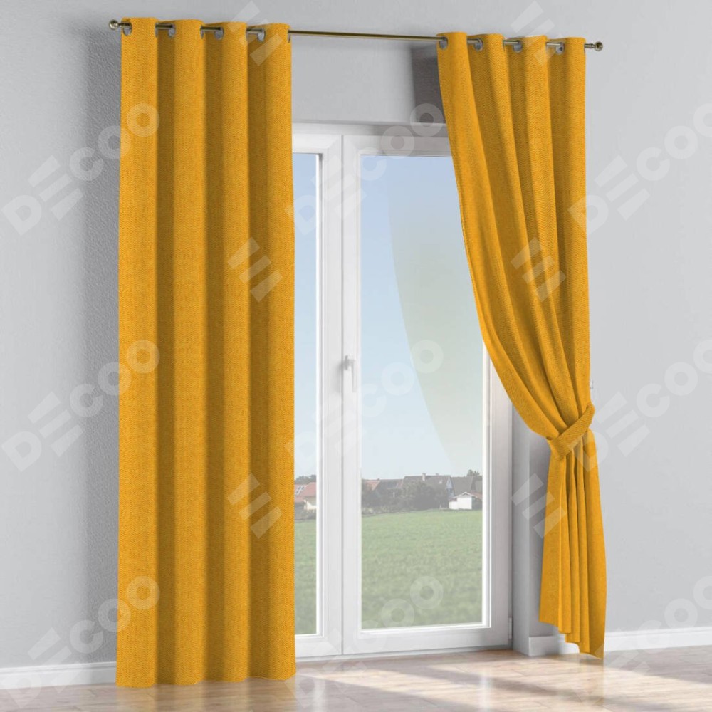 Комплект прямых штор, от производителя «Cortin», пошиты из ткани твид блэкаут медово-желтый, артикул ткани 21641. Данная модель пошита на люверсах, комплектуется на выбор круглым карнизом и подходит для монтажа на стену или потолок. Прямые шторы на люверсах шьются по стандарту с коэффициентом 1/2 (на 100 см. ширины проёма 200 см. ширины ткани), отличительным преимуществом данной модели является простой способ монтажа. Достаточно повесить ее на трубу и штора готова!