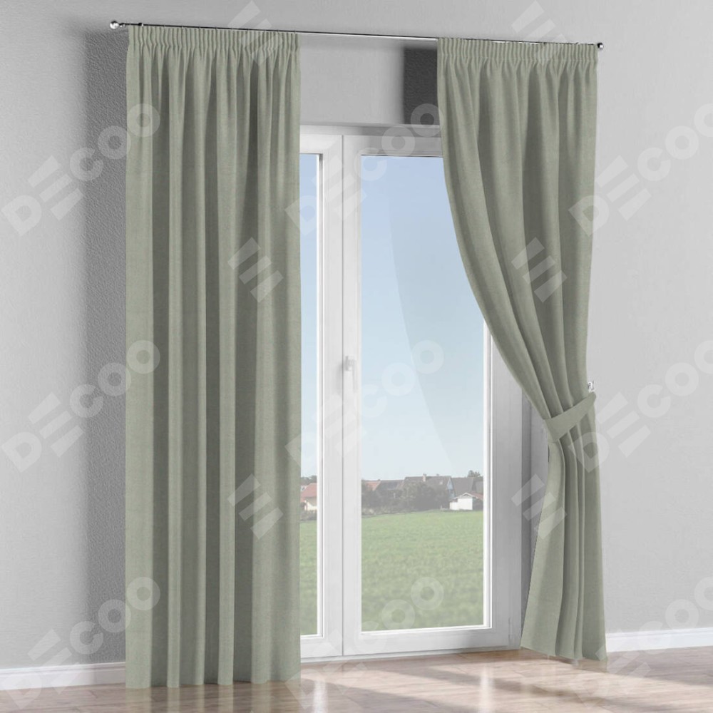 Комплект прямых штор, от производителя «Cortin», пошиты из ткани блэкаут однотонный серый, артикул ткани 88292. С изнаночной стороны в верхней части штор пристрачивается шторная лента с декоративными складками «Карандаш». Для создания элегантных складок прямые шторы шьются по стандарту с коэффициентом 1:2 (на 100 см. ширины проёма 200 см. ширины ткани).
