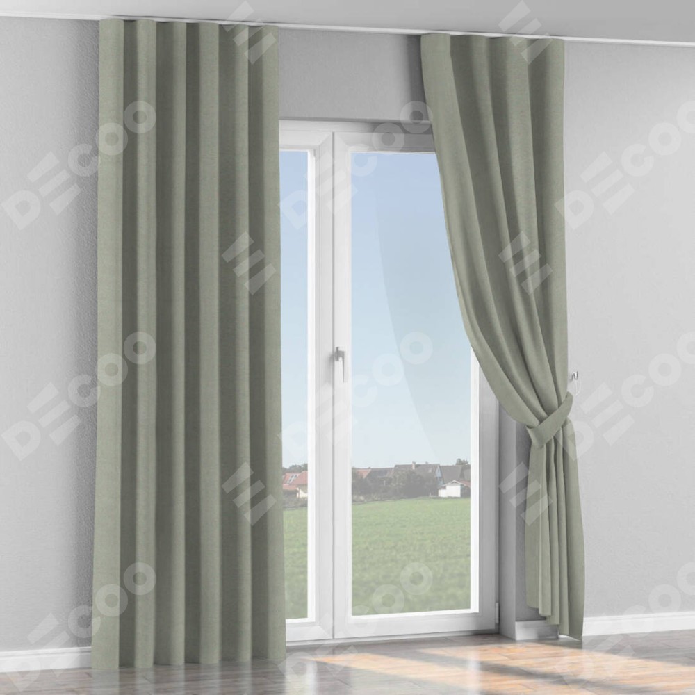 Комплект прямых штор, от производителя «Cortin», пошиты из ткани блэкаут однотонный серый, артикул ткани 88292. С изнаночной стороны в верхней части штор пристрачивается шторная лента с декоративными складками «Волна». Для создания элегантных складок прямые шторы шьются по стандарту с коэффициентом 1:2 (на 100 см. ширины проёма 200 см. ширины ткани).