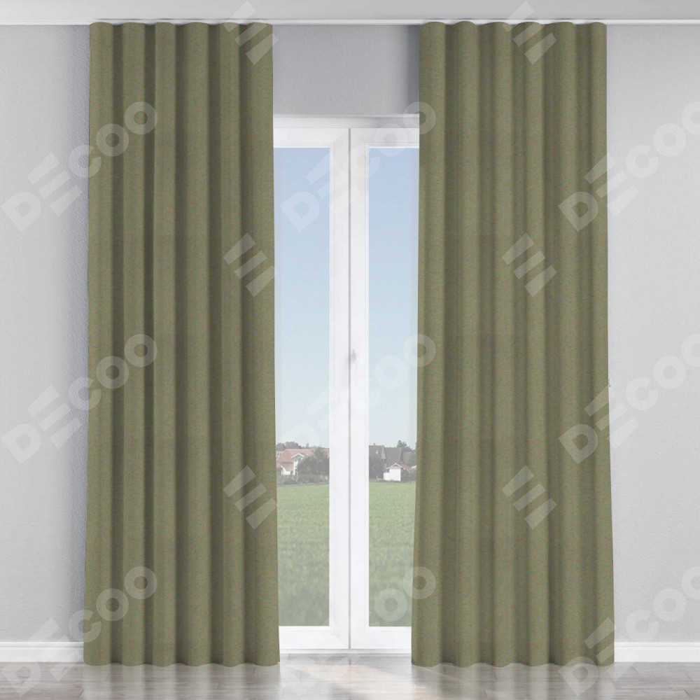 Комплект прямых штор, от производителя «Cortin», пошиты из ткани блэкаут однотонный серо-коричневый, артикул ткани 29568. С изнаночной стороны в верхней части штор пристрачивается шторная лента с декоративными складками «Волна». Для создания элегантных складок прямые шторы шьются по стандарту с коэффициентом 1:2 (на 100 см. ширины проёма 200 см. ширины ткани).