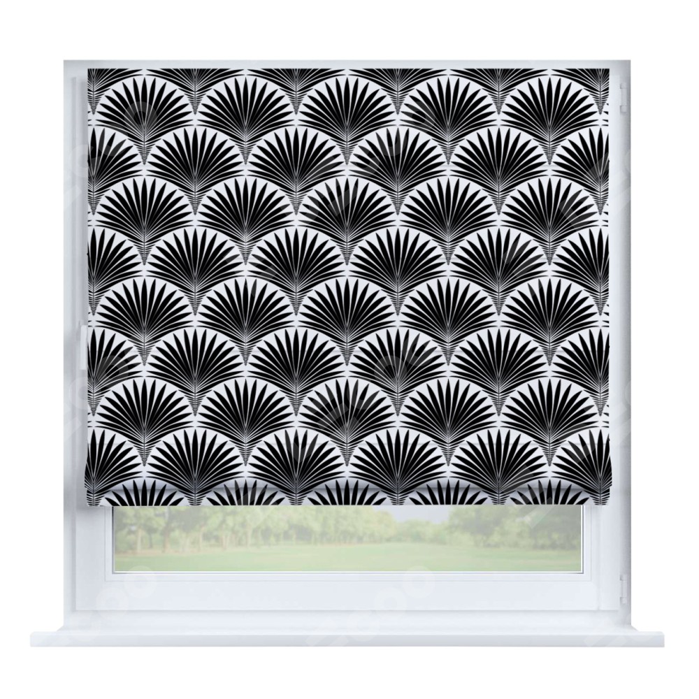Римская штора «Кортин» на створку «Арт-деко листья черный»