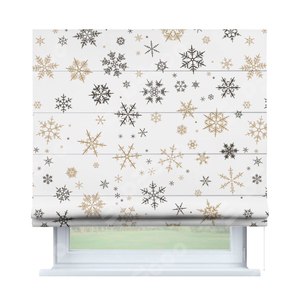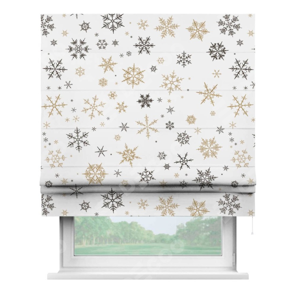 Римская штора производителя «Cortin», используется для проёма, пошита из ткани блэкаут с нанесением сублимационной печати «Зимняя метель». Имеет универсальный механизм и подходит для монтажа: на потолок, на стену и в нишу.