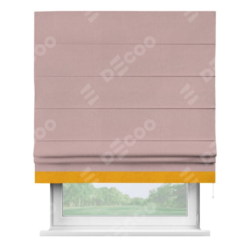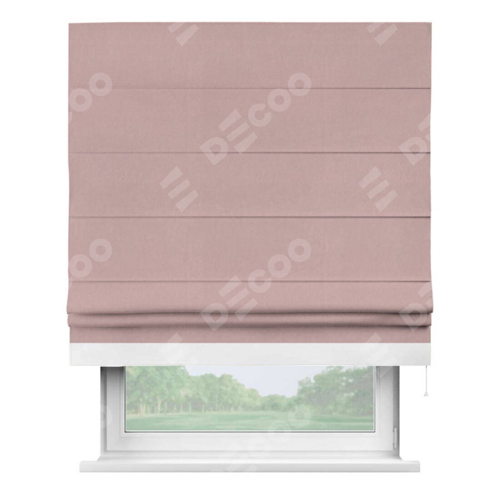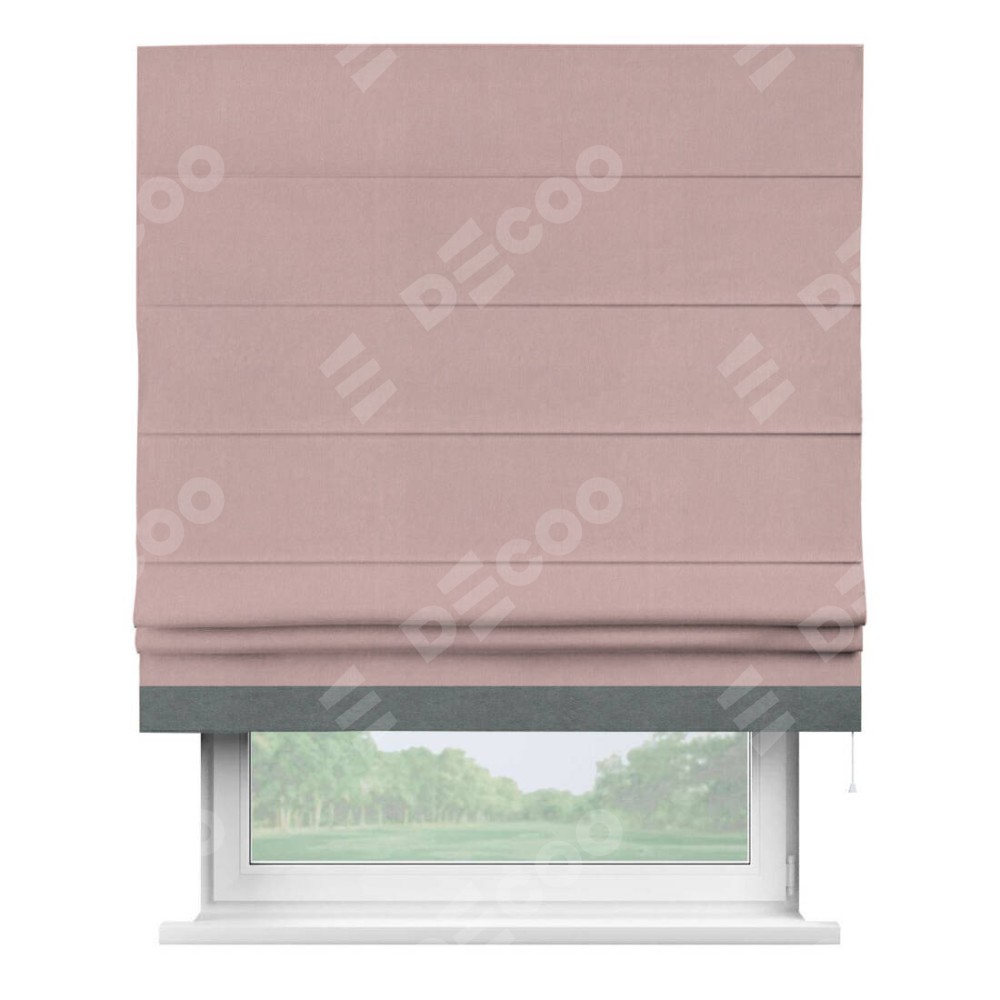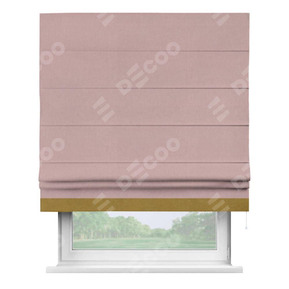 Римская штора «Кортин» с кантом Джестер, для проема, ткань вельвет розовая пудра